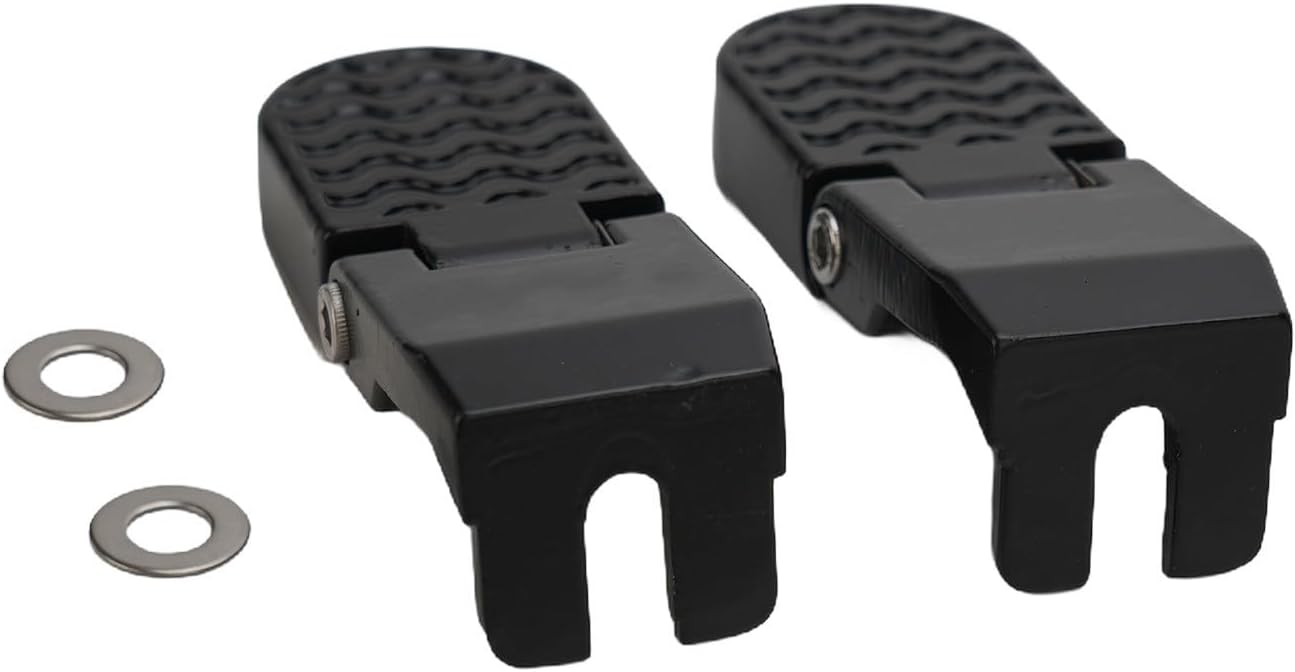 Leggeri: realizzati in lega di alluminio, questi poggiapiedi sono leggeri e leggeri. Sono antiruggine e hanno una buona consistenza, prestazioni di lunga durata. Installazione: progettati con fori riservati, questi pedali sono e hanno una forte versatilità. Possono essere facilmente installati su varie biciclette elettriche con fori di montaggio. Comodo design pieghevole: dotati di una funzione pieghevole, questi poggiapiedi offrono comodità e sicurezza. Una volta piegati, impediscono di graffiare oggetti o pedoni sulla strada, migliorando la sicurezza di guida. Compatibilità: adatti per biciclette elettriche leggere e leggere, questi pedali sono compatibili con una vasta gamma di modelli. Sono adatti sia per mountain bike che per biciclette pieghevoli.