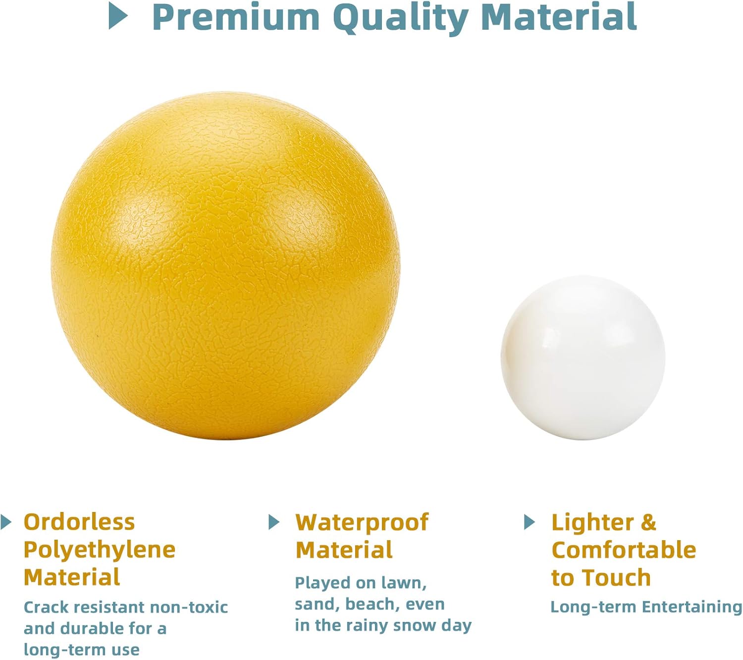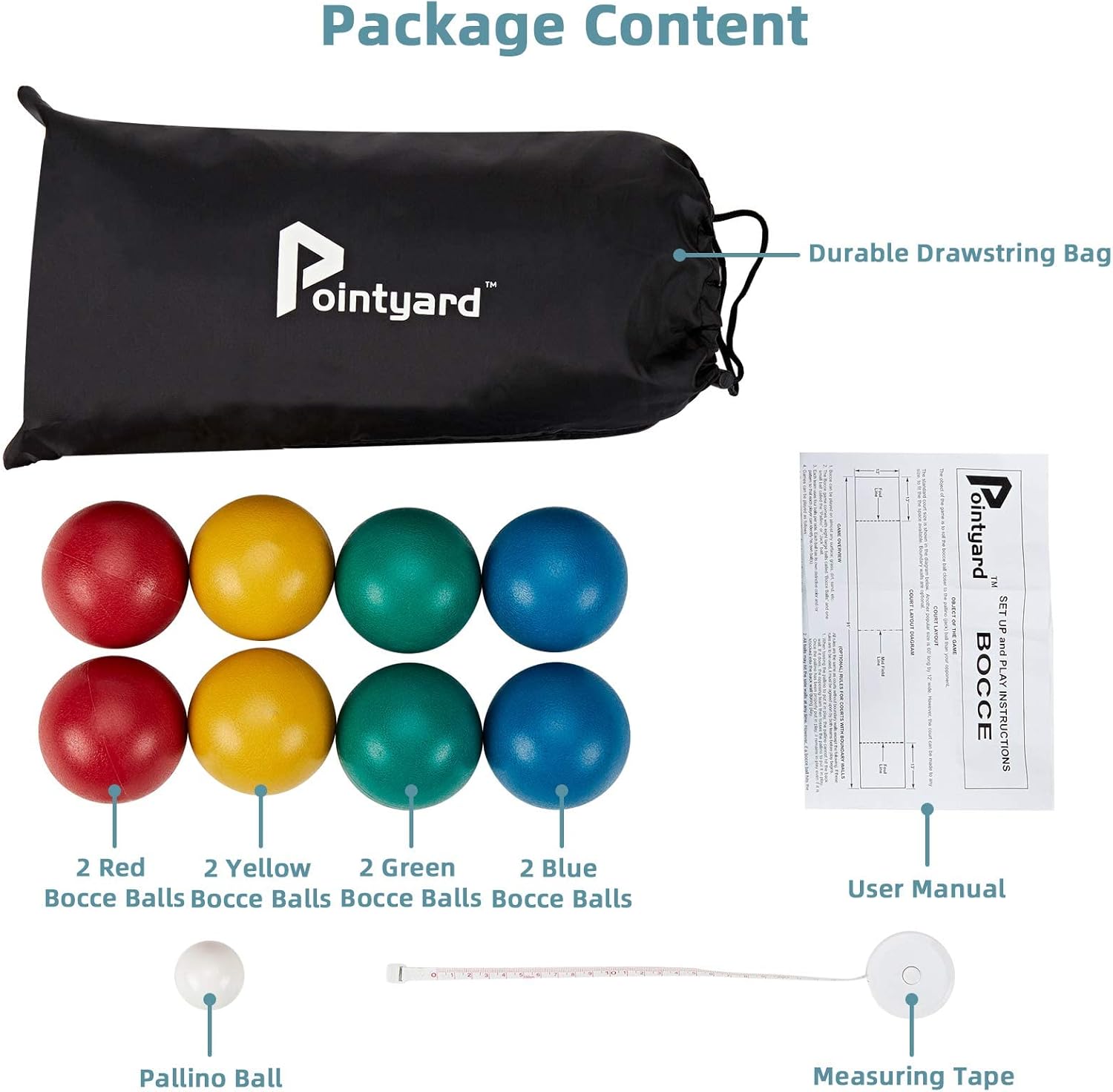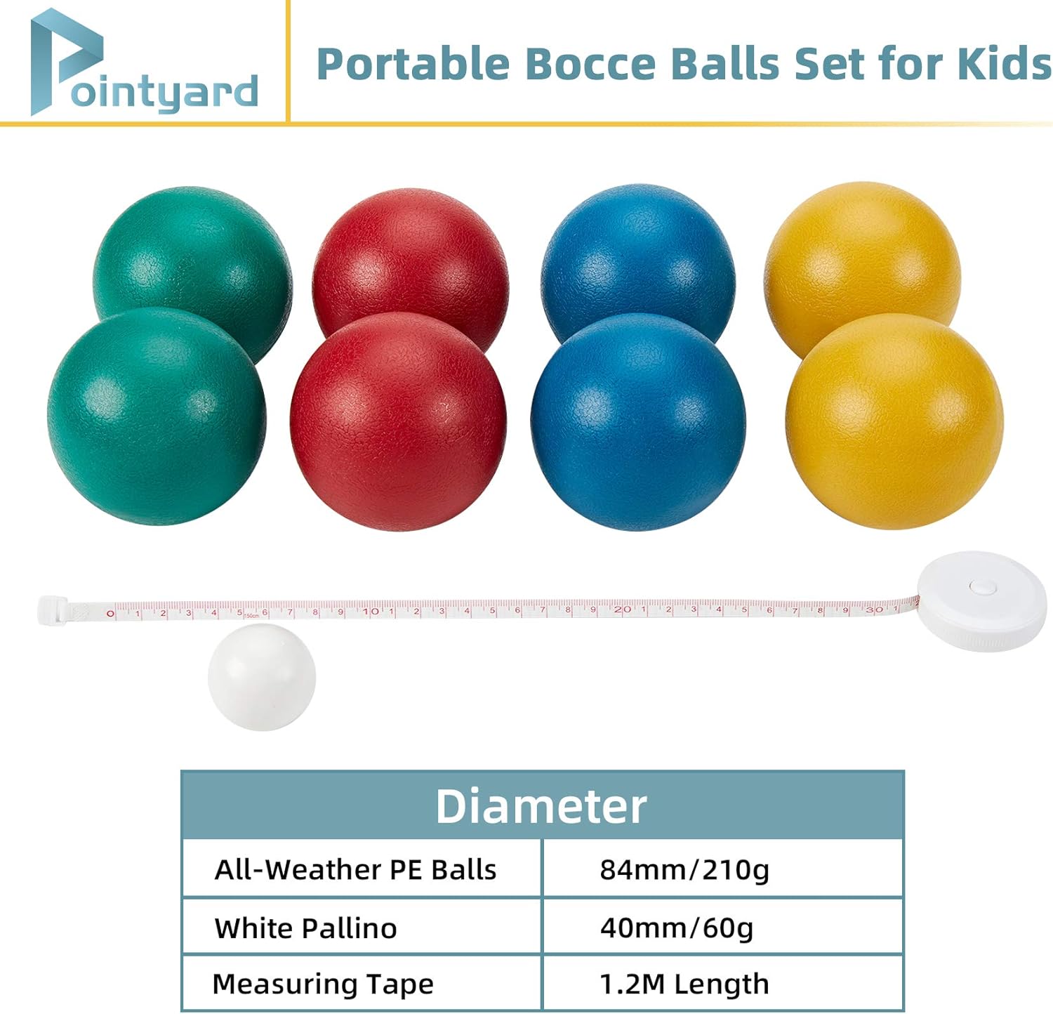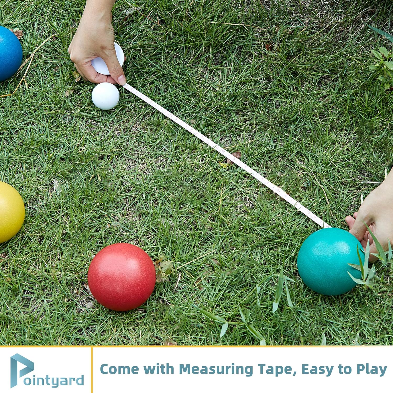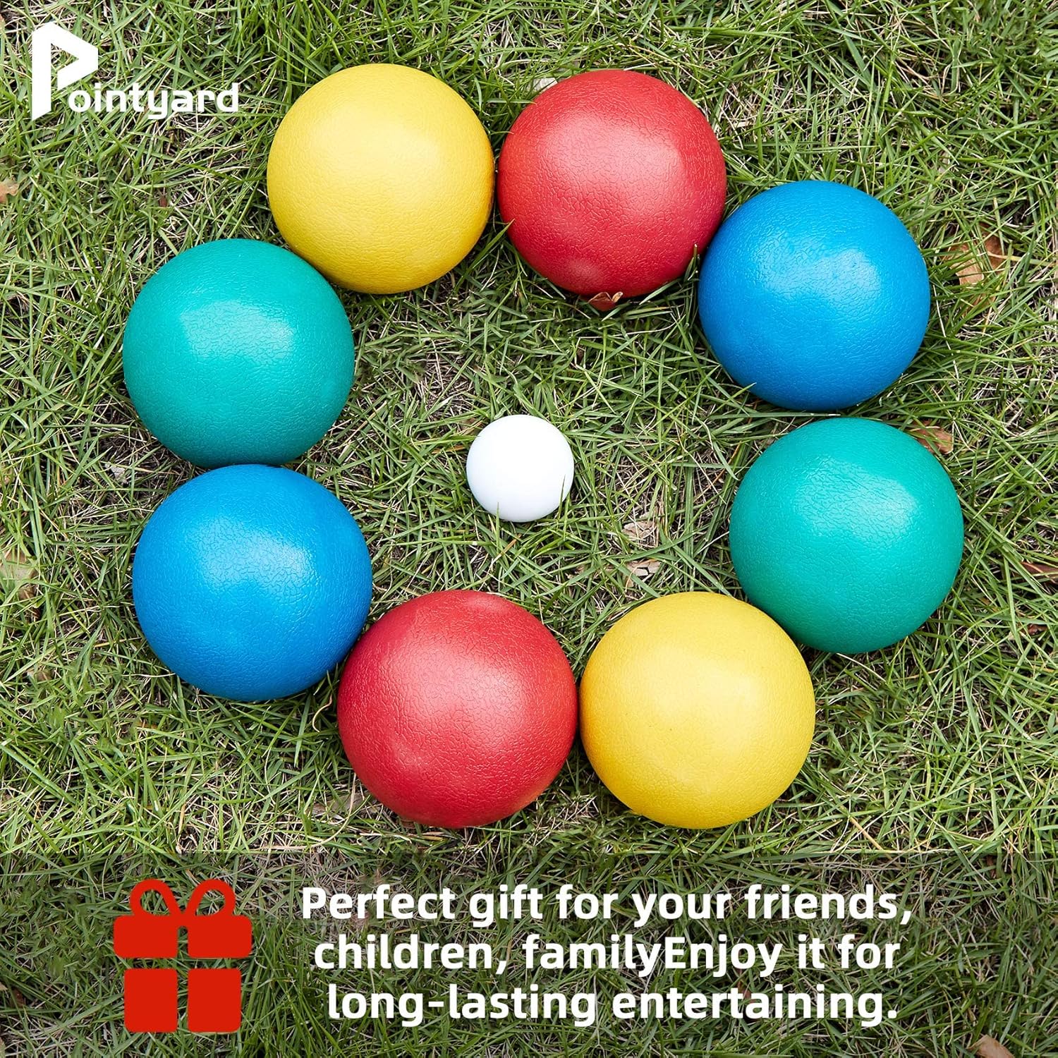 Set di 4 palline da bowling per principianti: il set include 8 palline da bocce in polietilene colorato da 84 mm (2 rossi, 2 verdi, 2 blu, 2 gialli), 1 pallino bianco da 40 mm, 1 borsa con cerniera resistente e 1 misura. Corda, che include tutto il necessario per iniziare un affascinante Bocce Balls Games. Ci sono due modelli profondamente scolpiti per colore, come il taglio a cerchio e il taglio quadrato, permettendo a 2-8 giocatori di unirsi all'intrattenimento. Palline in polietilene morbido di alta qualità: le nostre robuste palle da bocce sono realizzate in polietilene di alta qualità per un uso a lungo termine. Adottando un materiale impermeabile e senza crepe, puoi anche giocare a questa palla da bocce per tutte le stagioni ovunque anno dopo anno, come prato, erba terra, spiaggia, mare, anche nel giorno di pioggia, dandoti una scusa per essere fuori un giorno feriale dopo il lavoro e trascorrere del tempo nel cortile con amici e familiari. 【Più leggera e sicura per i bambini】Questa palla da bocce in PE è più leggera della sfera in resina regolamentare, è ideale per i principianti. Con materiale ecologico, è sicuro per i vostri bambini. Il set per bocce per famiglie comprende una robusta custodia in tela con cerniera, comoda per il trasporto e lo stoccaggio. Puoi prenderlo se hai intenzione di andare in spiaggia, campeggio, fare un picnic, feste, all'aperto, fare un viaggio o barbecue. Non c'è bisogno di montare e molto facile da imparare. 【Gioco classico all'aperto per tutte le età】La nostra palla da bocce è un gioco divertente e affascinante. È facile per tutte le età giocare, come bambini, bambini, adolescenti, adulti, genitori, ecc. Basta semplicemente installarlo ovunque, rendendolo perfetto per un gruppo più grande di 2-8 giocatori. Ideale per picnic in famiglia, campeggio, giochi in cortile, spiagge, tutti i tipi di feste, prato e altri eventi sociali. Regalo perfetto e soddisfazione al 100%: il set classico di palline da bocce è un regalo perfetto per amici, bambini e famiglie. Bocce Game è circa finezza non fitness. Bocce è uno sport dove puoi rilassarti, bere un drink in mano, socializzare. Set di ottima qualità ricreativa per trascorrere il tempo libero con la famiglia. La vostra soddisfazione è la prima importanza per noi, offriamo un servizio clienti 24 ore su 24 e un ritorno di 30 giorni. Tutte le domande, non esitate a contattarci!