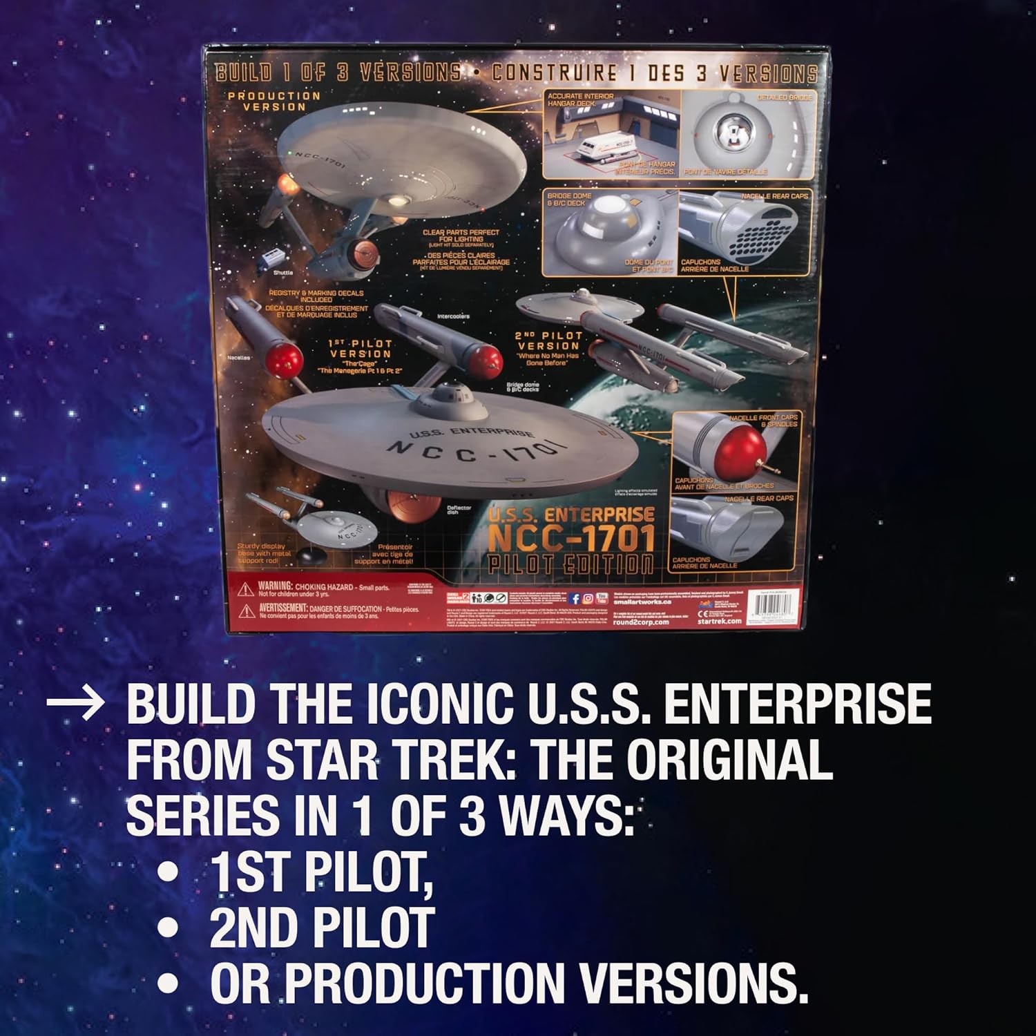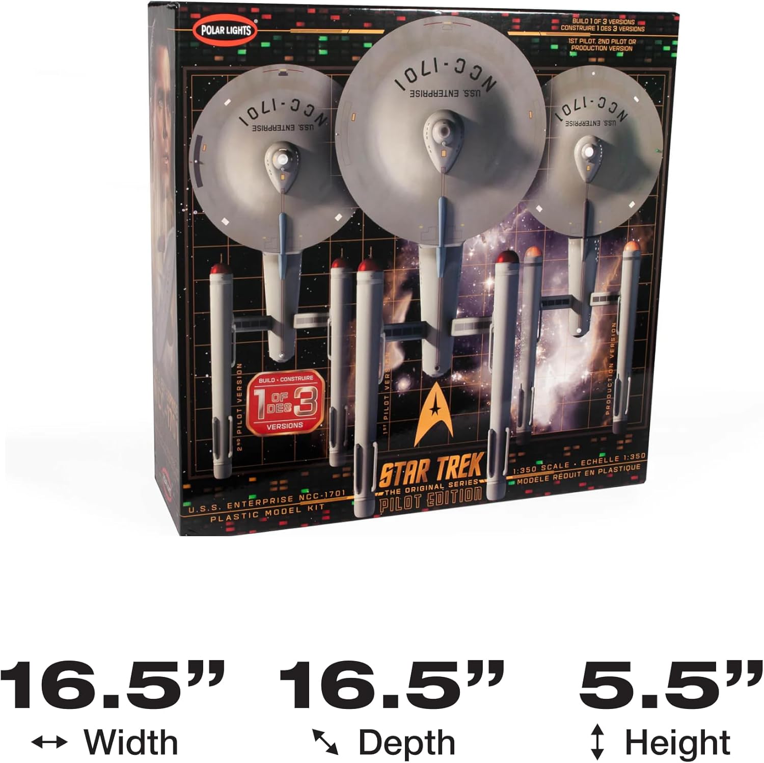 Specifiche rapide: scala 1/350, oltre 200 parti. 32 lunghi. Modellato in plastica grigia con parti trasparenti, foglio adesivo ad acqua e istruzioni di montaggio pittoriche. Livello di abilità 2 Consigliato per modellatori di età 10+ vernice e colla richiesti. CARATTERISTICHE APLENTÀ: Il kit include un vano navetta completo e un piccolo ponte. È progettato per accettare le luci polari in scala 1:350 U.S.S. Enterprise Light Kit (venduto separatamente). Il kit include una grande guida alla decorazione a colori. Grande formato: questo kit lungo 32 si basa su una vasta ricerca della miniatura originale per l'autenticità. Include un libretto di montaggio e decorazione a colori. ICONIC SPACESHIP: Costruisci l'iconica U.S.S. Enterprise di STAR TREK: LA SERIE ORIGINALE in 1 di 3 modi: 1° Pilota, 2° Pilota o Production versioni.