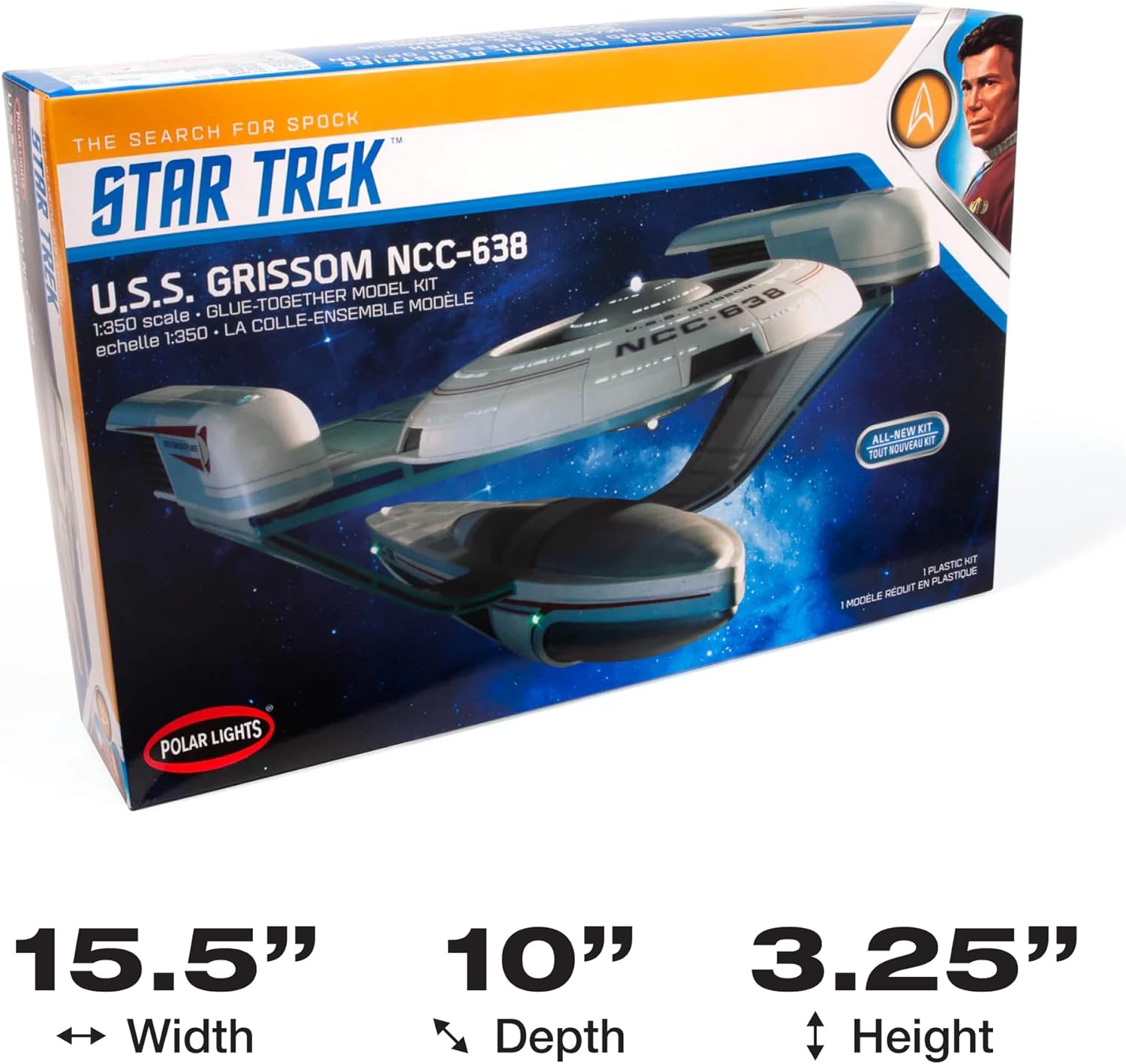 SCIENCE VESSEL: Pochi disegni astronave nel pantheon STAR TREK sono distintivi come la classe Oberth, U.S.S. Grissom, presente in Star Trek III: La ricerca di Spock e STAR TREK: La prossima generazione. POPOLARE GRANDE SCALA: U.S.S. Grissom è l'ultima aggiunta ai kit di modelli in scala 1:350 Polar Lights, che forniscono dettagli nitidi e opzioni per il sensore posteriore. CARATTERISTICHE APLENTÀ: Il kit è dettagliato in modo autentico ed è progettato per l'illuminazione personalizzata. Include decalcomanie per marcatura e base a cupola con asta di supporto in metallo. Specifiche rapide: scala 1/350, 79 parti. Lungo 13 ¾ ". Stampato in plastica bianca con parti trasparenti, foglio adesivo acquascivolo e istruzioni di montaggio pittoriche. Livello di abilità 2 - Suggerito per i modellisti età 10+ VERNICI E COLLA RICHIESTI.