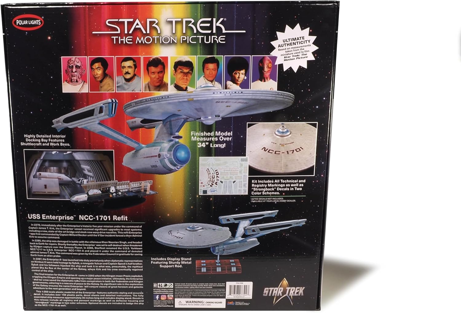 Design autentico: presenta dettagli precisi, tra cui un alloggiamento interno altamente dettagliato con navetta e api da lavoro. Decalcomanie personalizzabili: Include registro, marcature gagliardetto, alloggiamento deflettore e decalcomanie strongback con badge NCC-1701-A opzionale. Costruzione di alta qualità: oltre 150 parti stampate in grigio per un progetto impegnativo e gratificante. Modello di grande display: la dimensione costruita è lunga 88,9 cm, perfetta da mostrare nella tua collezione. Pacchetto completo: include un robusto espositore con un'asta di supporto in metallo, confezionato nell'iconico marchio Polar Lights Star Trek.