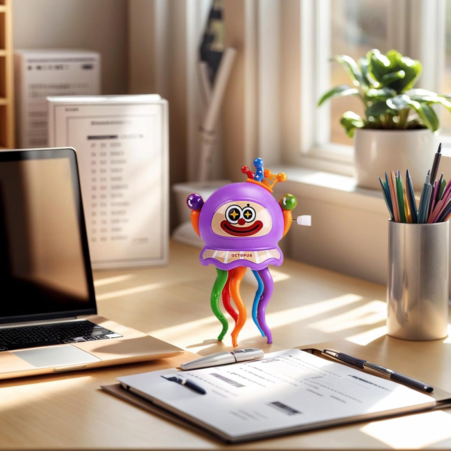 Intrattenimento dinamico: Il design da pagliaccio ispirato al polpo, i colori brillanti e l'azione oscillante catturano l'immaginazione fornendo divertimento senza fine per i bambini Strumento di Intrattenimento Familiare: Unisce le famiglie con un'esperienza coinvolgente e dinamica, offrendo un giocattolo elettrico polpo progettato per favorire momenti di condivisione e divertimento interattivo, assicurando affidabilità nel Giocattolo Durevole: Costruito per durare nel con materiali antigraffio, include meccanismi di sicurezza antischiacciamento e un design con bordi arrotondati per esperienze di gioco consistently sicure Relax durante le Pause: Combina la simulazione dei tentacoli di polpo e l'attivazione di danza dinamica a manovella, offrendo un'esperienza rilassante per distendersi durante il libero Utilizzi Diversi: Questo ornamento da scrivania unisce design adorabile e funzionalità di dallo stress, integrandosi perfettamente in qualsiasi ambiente grazie alle dimensioni compatte e al fascino visivo, ideale per decorare e rilassare in ufficio o a casa