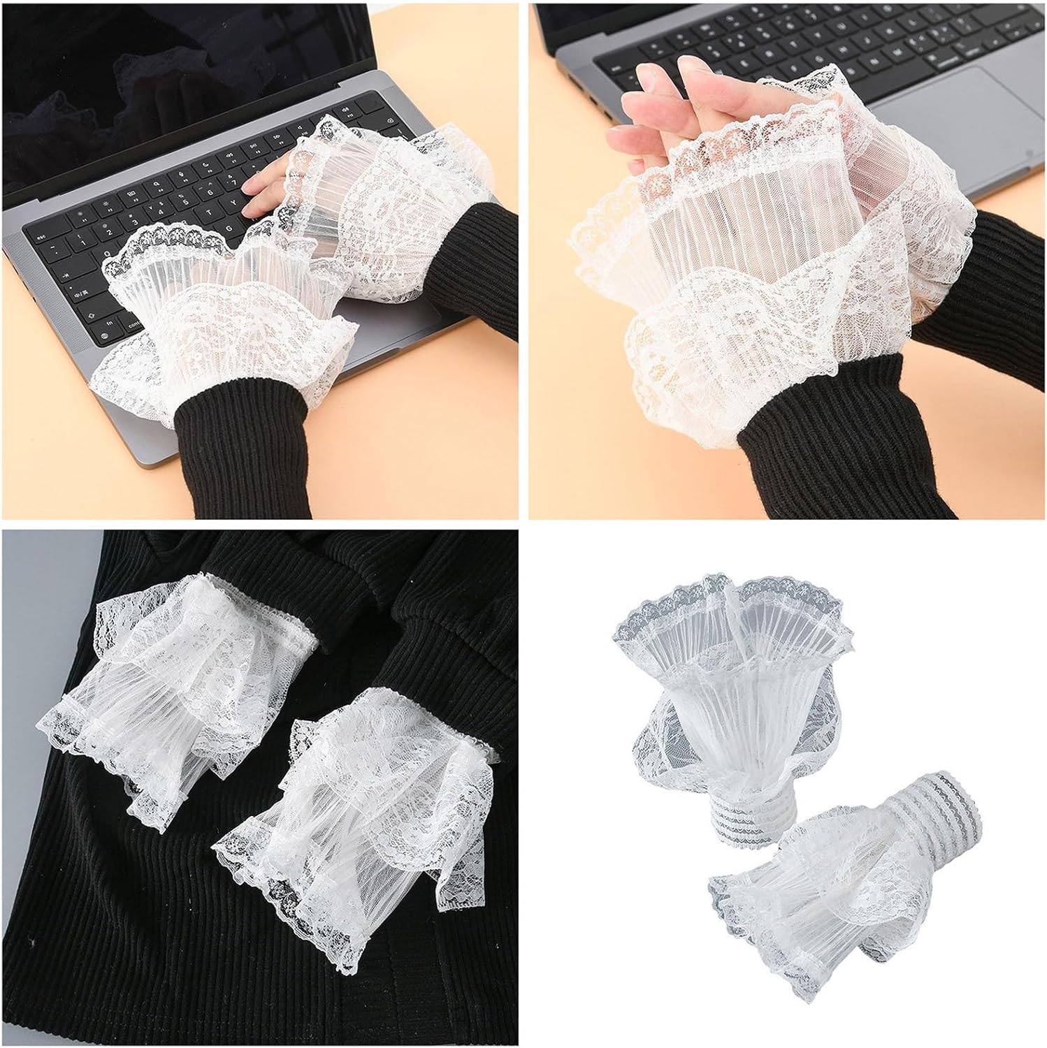 Polsini svasati con volant staccabili. Semplice, i polsini W si abbinano a tutti i tipi di vestiti senza pressione. Decora perfettamente le maniche delle ragazze per rendere il tuo vestito più fatato e . Con poliestere, comodo al tatto e morbido da indossare. Bella decorazione di maglioni, cappotti, camicie, abiti, uniformi, giacche e altri vestiti casual per renderlo bello. La confezione include: 1 paio di polsini da polso