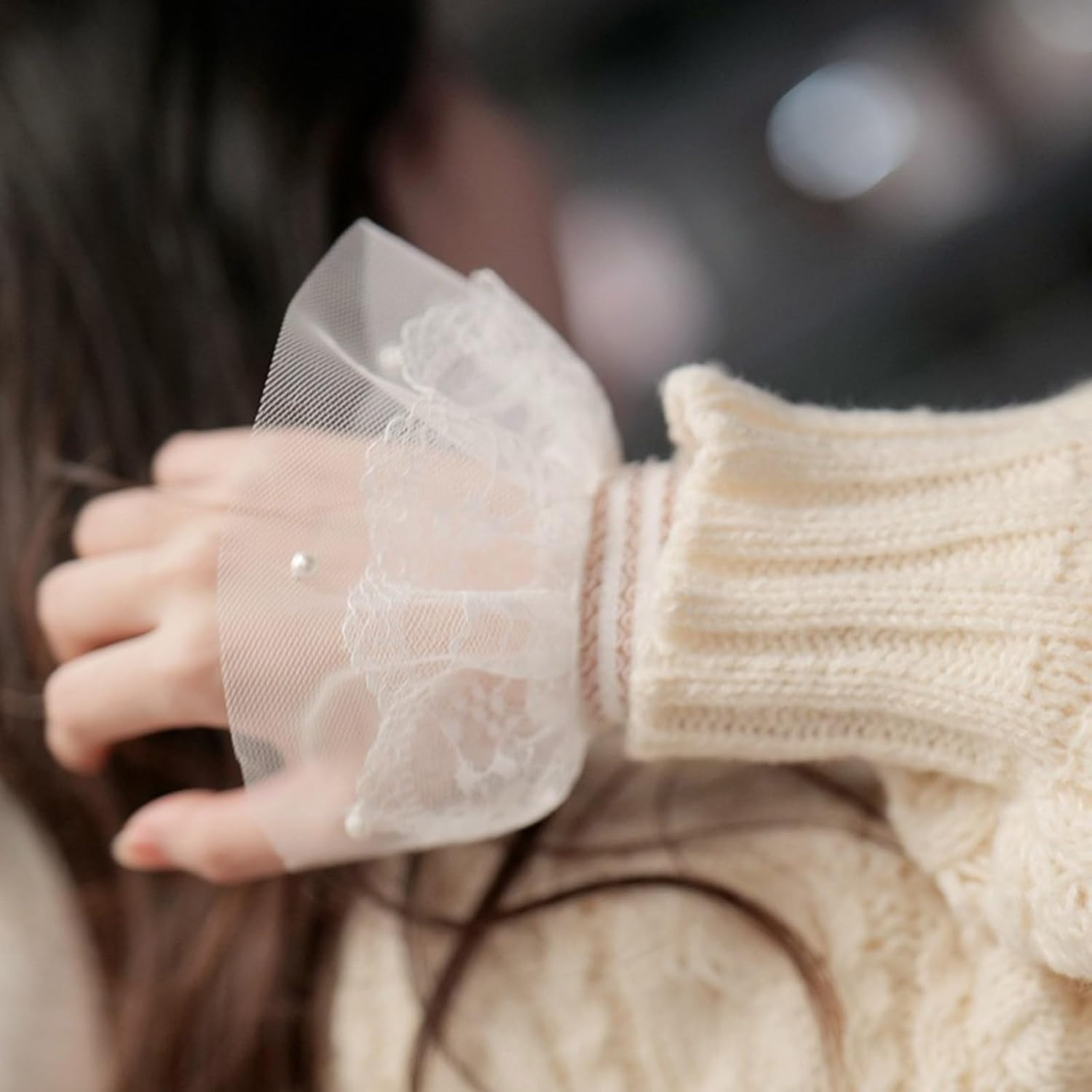 Polsini svasati con volant staccabili. Semplice, i polsini W si abbinano a tutti i tipi di vestiti senza pressione. Decora perfettamente le maniche delle ragazze per rendere il tuo vestito più fatato e . poliestere, comodo al tatto e morbido da indossare. Bella decorazione di maglioni, cappotti, camicie, abiti, uniformi, giacche e altri vestiti casual per renderlo bello. La confezione include: 1 paio di polsini da polso