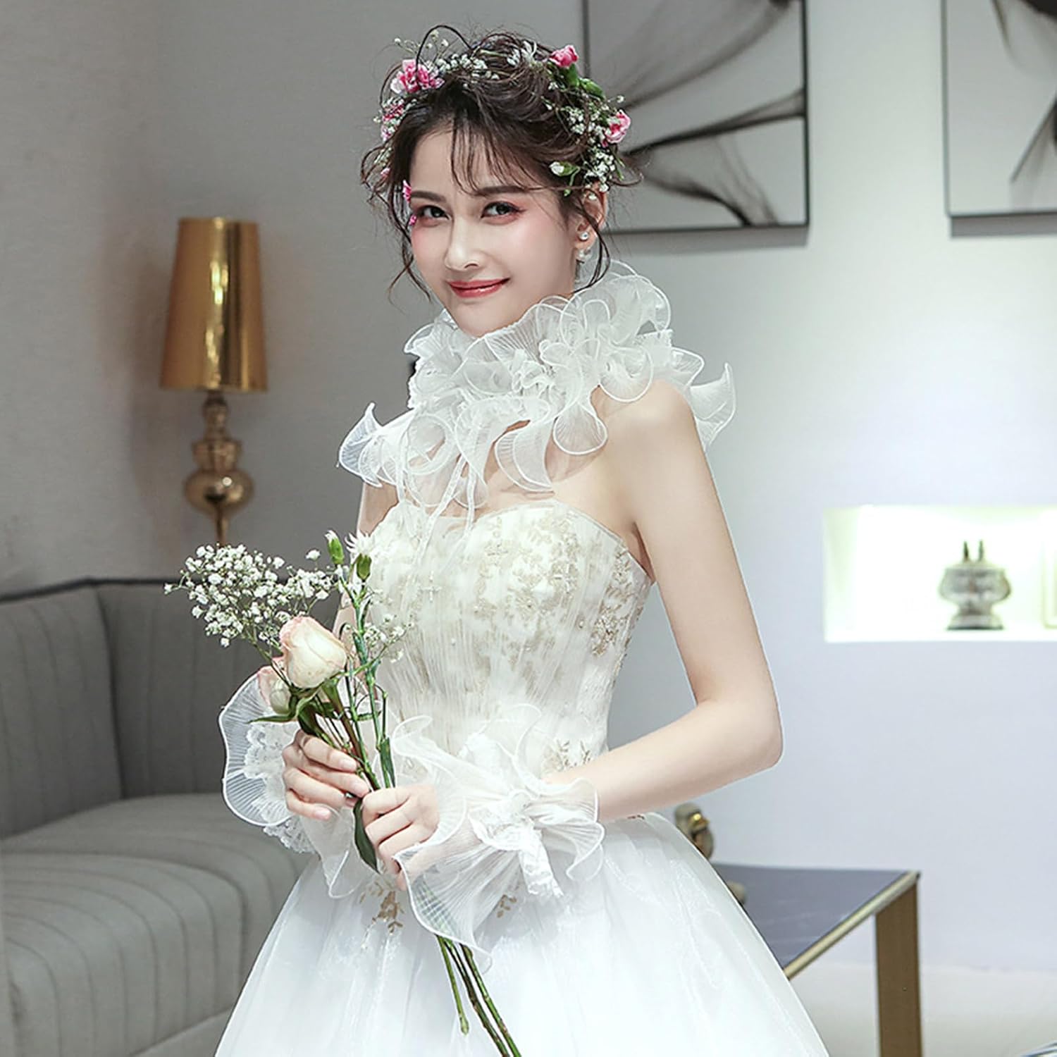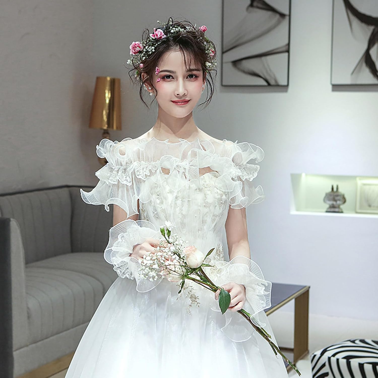 Migliora i tuoi abiti con queste maniche finte staccabili con volant svasato in pizzo, perfette per aggiungere tocchi di eleganza a qualsiasi look. Realizzati in poliestere di alta qualità, questi finti polsini sono morbidi e comodi da indossare, con un elastico al polso per una vestibilità perfetta. Meraviglioso per le donne alla moda che vogliono elevare il proprio feeling con accessori unici che si distinguono dalla massa. Queste versatili maniche finte possono essere indossate con maglioni, camicette, abiti, uniformi, giacche e altri abiti casual, perfette sia per occasioni formali che casual. Si prepara a girare la testa con queste belle maniche finte che aggiungeranno tocchi di moda a qualsiasi abbigliamento, facendoti sentire fiducia e fascino.