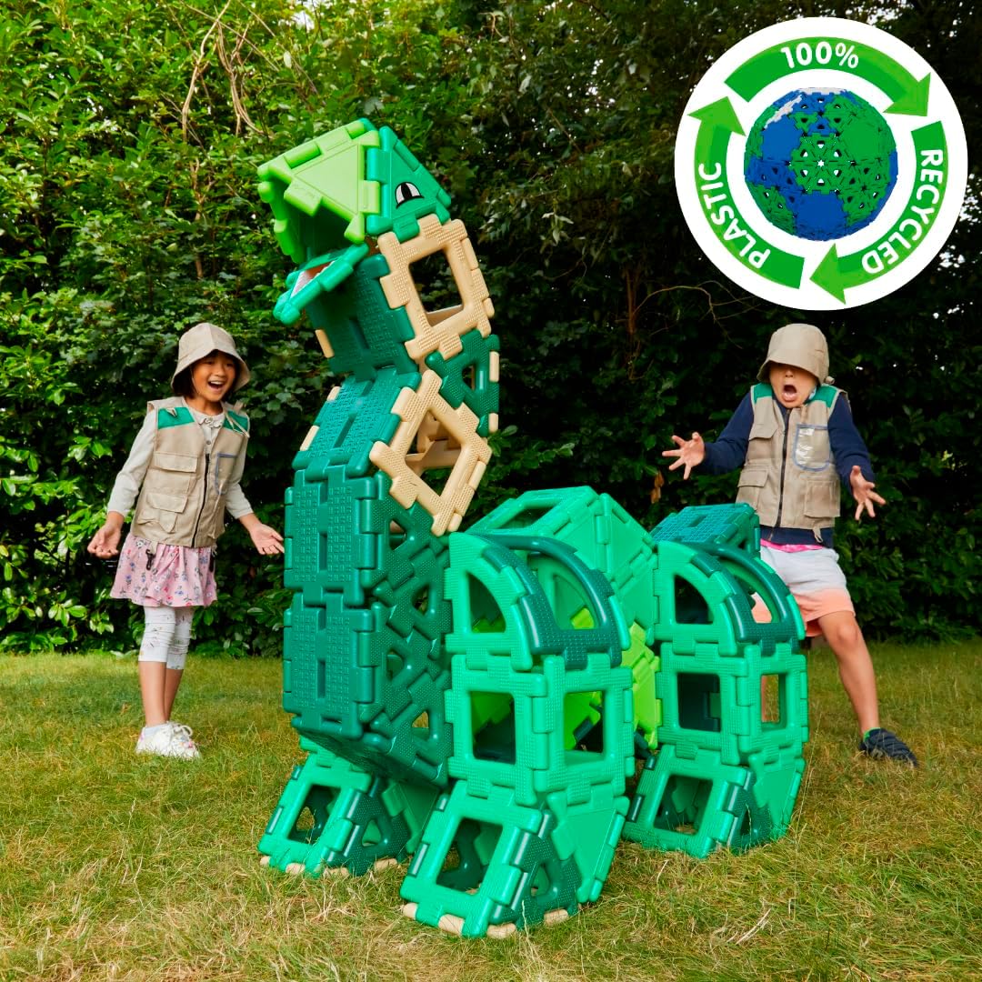 COSTRUISCI E COMPRENDI I DINOSAURI: il set Polydron Giant "Dinosauro" riporta in vita gli animali preistorici. 5 modelli di dinosauri realizzati con parti grandi e facili da impugnare, perfetti per bambini dai 2 anni in su. MATERIALE SOSTENIBILE: Il set di dinosauri da 130 pezzi è realizzato al 100% in plastica riciclata. È robusto, durevole e ideale per l'asilo nido, la scuola materna o le lezioni inclusive. CREATIVITÀ IN MOVIMENTO: gli artigli rimovibili e le forme impressionanti incoraggiano sempre nuovi giochi di ruolo. I dinosauri finiti invitano al movimento, alla comunicazione e al gioco libero. INCLUSIVO E PREmuroso: ogni elemento è dotato di Braille, quindi anche i bambini non vedenti possono partecipare. Il set supporta la cooperazione inclusiva nella vita di tutti i giorni. CAPACITÀ MOTORIE E LAVORO DI SQUADRA: Durante la costruzione, i bambini allenano le loro capacità motorie, il pensiero spaziale e le capacità di lavoro di squadra. Le cifre ci incoraggiano a costruire e risolvere problemi insieme.