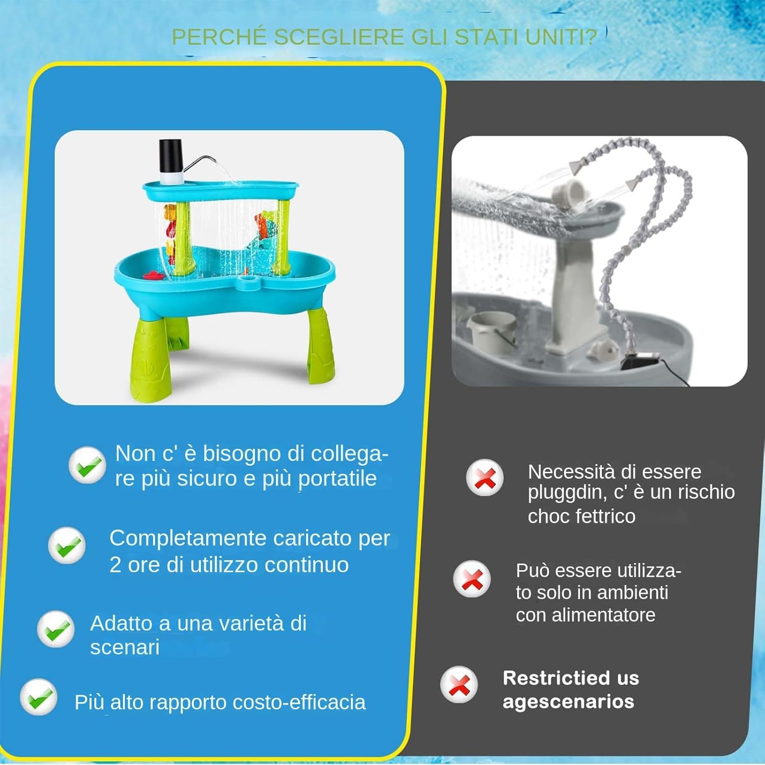 Installazione Semplice: Dotata di tecnologia di fissaggio sicuro per tubi e guida dettagliata al setup della circolazione idrica, la pompa supporta un montaggio facile grazie al fissaggio con nastro biadesivo o all'opzione di installazione con fori per trapano, garantendo una configurazione rapida e senza complicazioni per la massima facilità d'uso Uso Prolungato: Realizzata con materiali robusti per una costruzione resistente ai , questa pompa per tavolo d'acqua garantisce capacità d'uso estesa e lunga durata nel , ideale per scenari di utilizzo multiplo in diversi ambienti domestici e da giardino Prestazioni Prolungate:Pompa per tavolo acqua compatibile con ogni occasione, alimentata a batteria ricaricabile per performance senza pause fino a 2 ore, soluzione ideale per divertimento di gruppo duraturo e senza interruzioni Regalo Crescita Pensato: Migliora il gioco evolutivo con design coinvolgente, offrendo esperienze interattive gioiose come regalo festivo premuroso che accompagna i bambini nelle fasi di crescita Attivazione Semplice: Pulsante grande e reattivo con immediato, combinato con tecnologia senza fili, permette ai bambini di gestire autonomamente la pompa per tavolo acquatico
