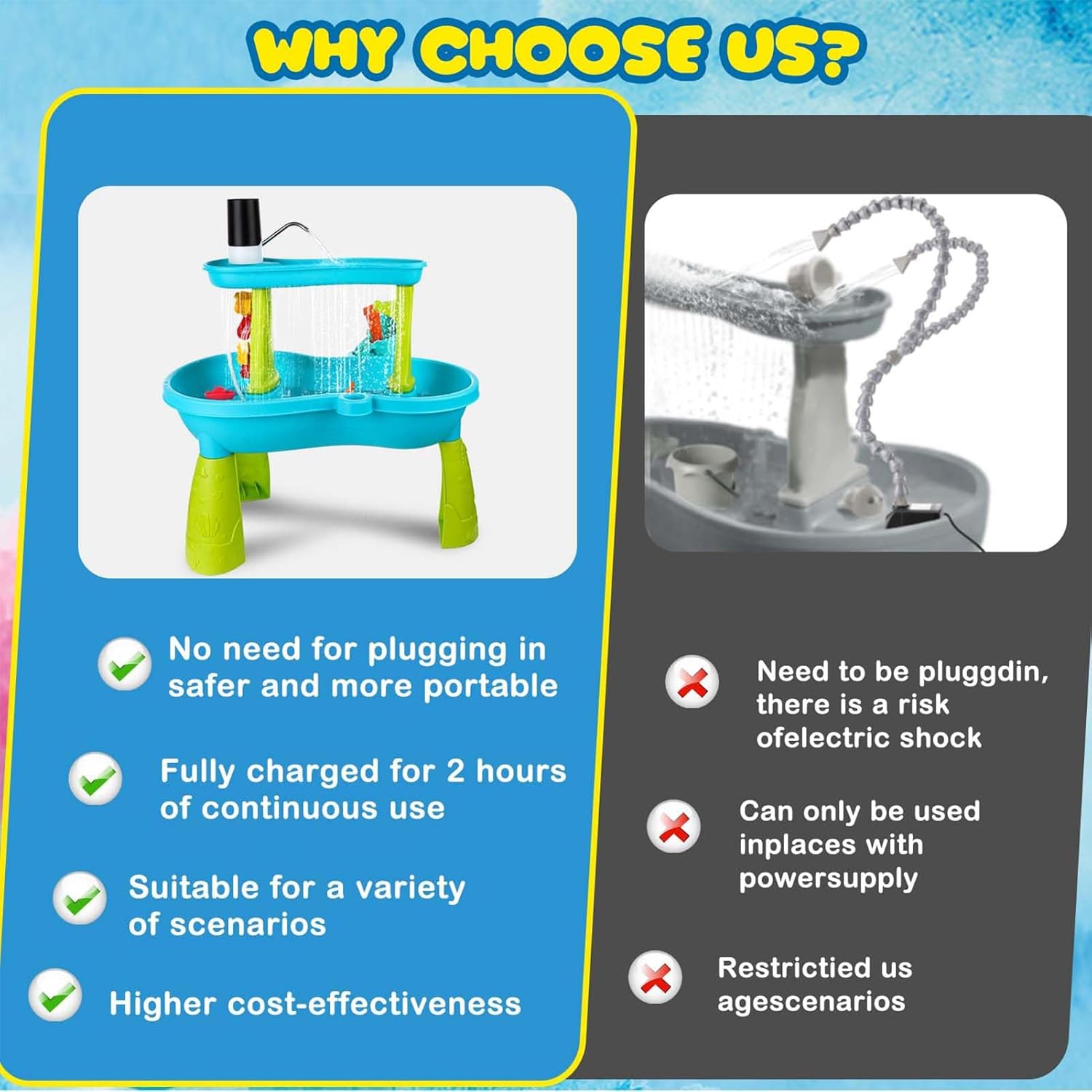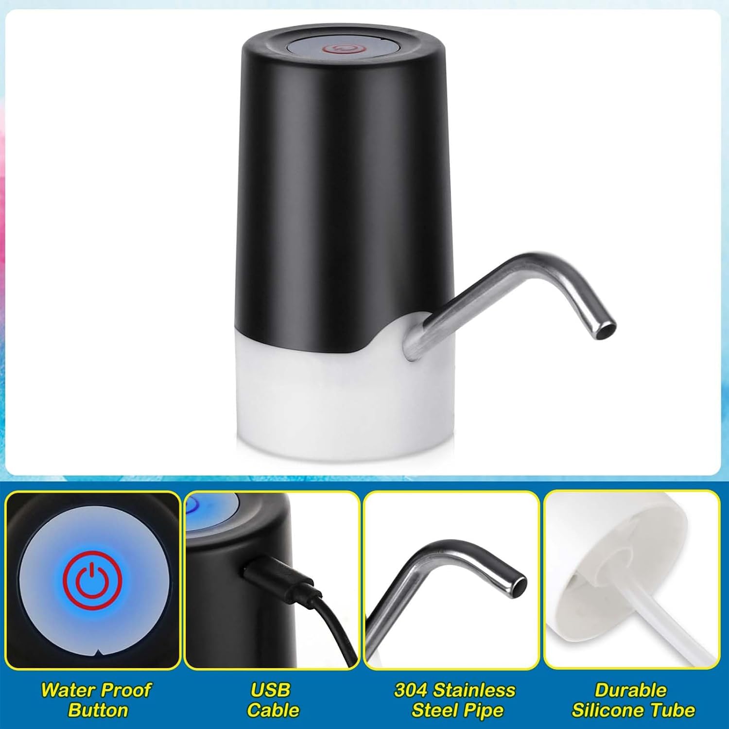 Sicurezza ottimale: controllo facile da attivare e avvio ultra veloce in 3 secondi garantiscono un utilizzo sicuro senza cavo grazie al sistema elettrico anti-groviglio Robustezza Migliorata: dotata di una costruzione resiliente, questa pompa è fatta per resistere a condizioni esigenti, offrendo una durata duratura e soddisfacendo le esigenze di utilizzo multiplo con una manutenzione minima richiesta. Selezione Regalo Attentivo: Migliora il gioco educativo grazie al suo design accattivante, che funge da giocattolo interattivo allegro e regalo di festa premuroso che accompagna le loro fasi chiave di sviluppo. Durata prolungata: progettata per serate con amici ed eventi, questa pompa ricaricabile offre fino a 2 ore di funzionamento continuo, ottimizzando il divertimento dei giochi d'acqua senza interruzioni Messa in servizio immediato: fissaggio del tubo ottimizzato con guida passo passo per una rapida installazione. Opzioni di posa mediante nastro biadesivo o foratura per un avvio senza indugio.