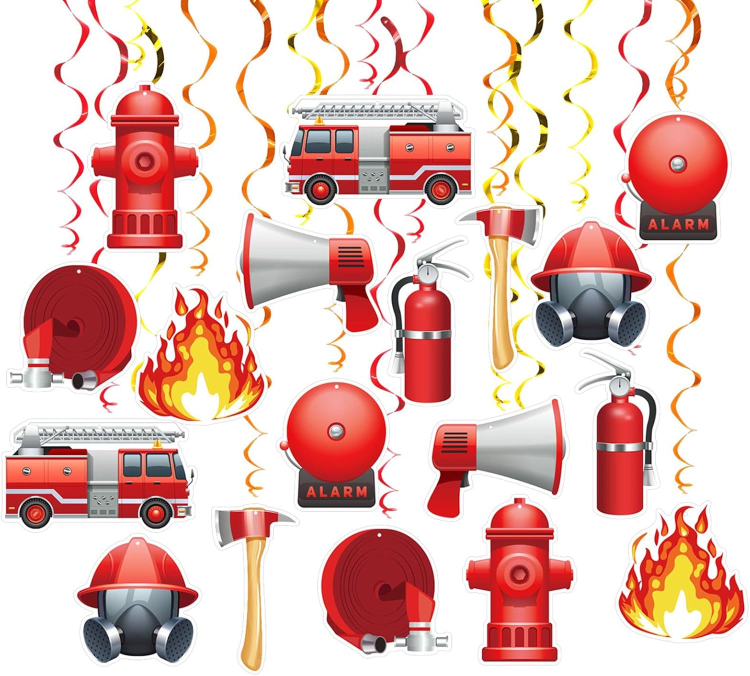 Ideale per feste compleanno, eventi scolastici, riunioni a tema e decori per le vacanze, questi turbini appesi portano eccitazione a qualsiasi ambiente Crea carta e PVC, queste decorazioni sono facili da installare, garantendo configurazione feste Perfetto per bambini, genitore, insegnanti e chiunque ami i temi dei pompieri, queste decorazioni rivolgono a un vasto pubblico questi Firetruck Party come oggetti scena fotografici o appendendolo da soffitti, finestra e altro ancora per creare esperienza coinvolgente Elevare la celebrazione a tema del vigile del fuoco con decorazioni per turbini appesi ai camion dei pompieri, progettate per aggiungere colore e atmosfere festival a qualsiasi evento