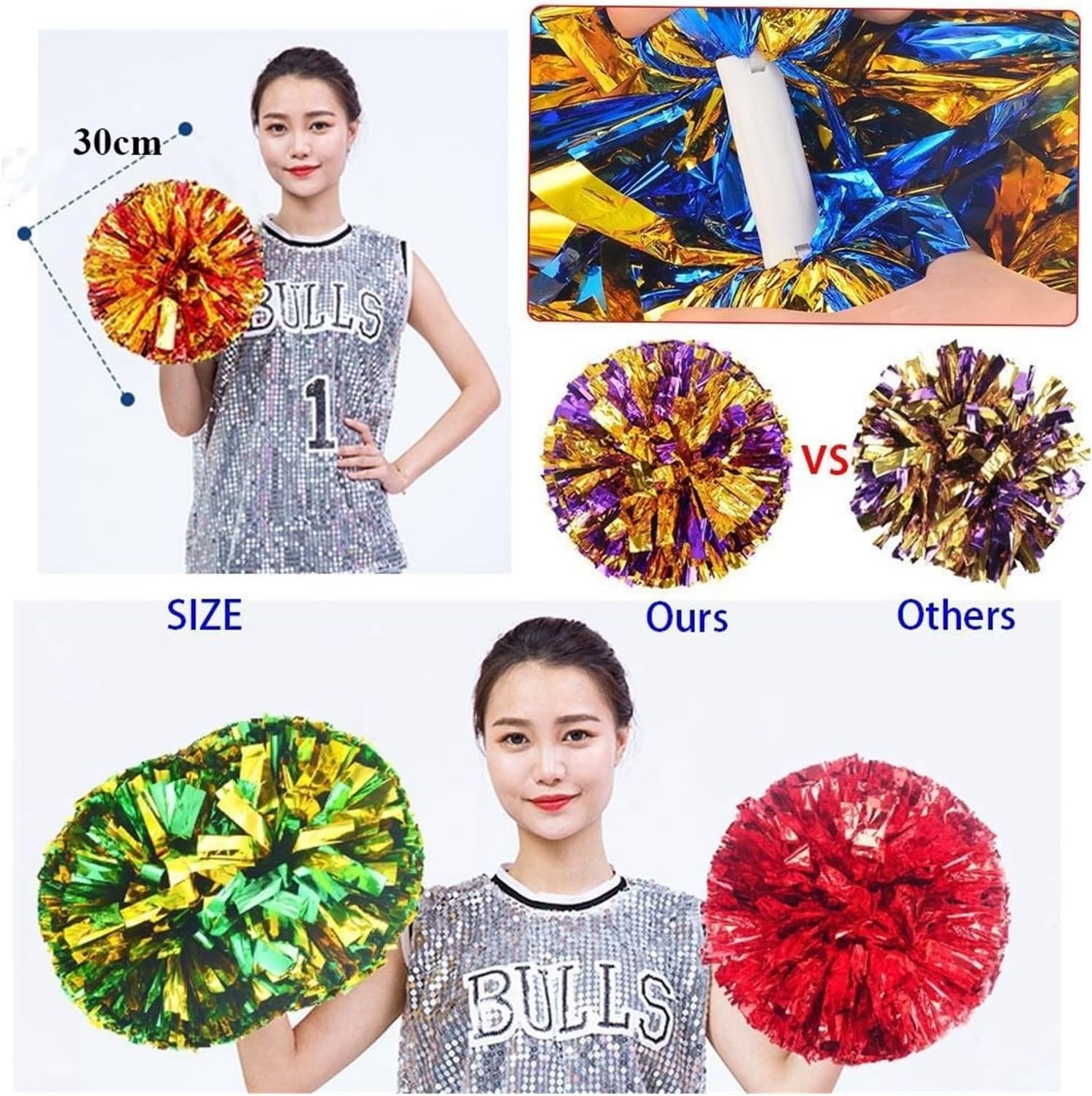 FACILE DA USARE: Progettati for la semplicità, i pompon da cheerleader sono facili da usare, consentendo alle cheerleader di tutti i livelli di abilità di incorporarli nelle loro esibizioni senza difficoltà MIGLIORA L'ALLEGRIA: i pompon delle cheerleader sono essenziali for migliorare lo spirito di squadra, consentendo alle cheerleader di radunare la folla e dare energia alle esibizioni con colori vivaci e movimenti vivaci COLORI VIVACI: Disponibili in una varietà di colori vivaci, questi pompon consentono alle cheerleader di personalizzare il loro look, mettendo in mostra i colori della squadra e aggiungendo un tocco di stile a ogni routine Questo pompon da tifo non è solo un accessorio perfetto e raffinato for il tifo, ma anche un accessorio indispensabile for molte occasioni. Può essere utilizzato for partite sportive, partite di calcio, partite di basket, stadi, feste e spettacoli teatrali. Rende l'atmosfera più calda e allegra. Pompon da cheerleader: il colore attira l'attenzione ed è attraente, il che fornisce stimolazione visiva e tattile, pompon da cheerleader