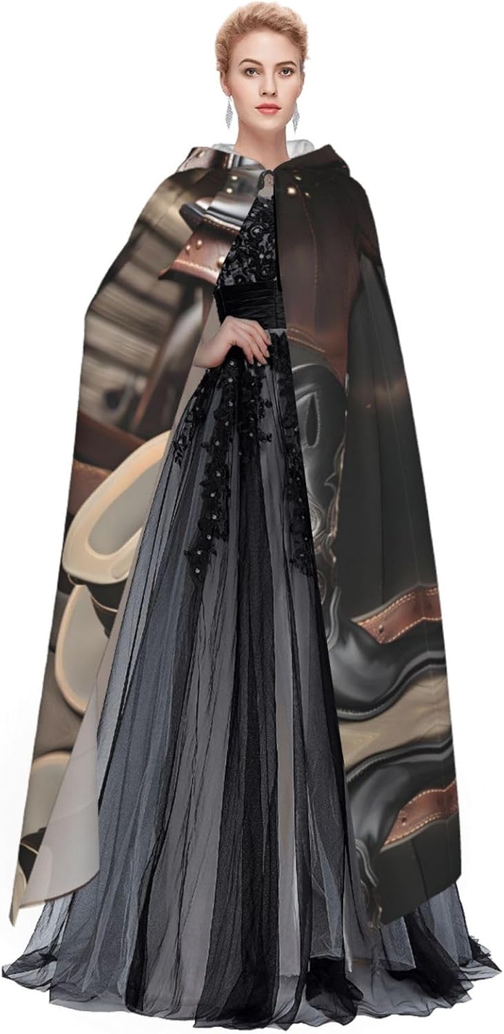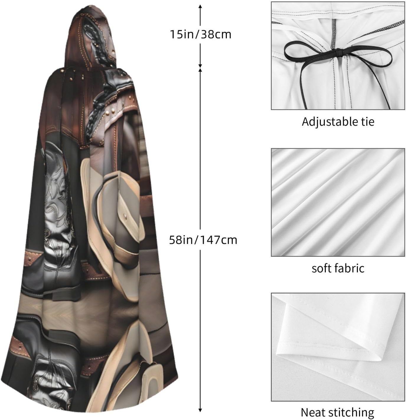 Poncho con cappuccio unisex con cappello nero da cowboy, stivali occidentali, poncho con cappuccio per cosplay, Halloween, feste in costume
