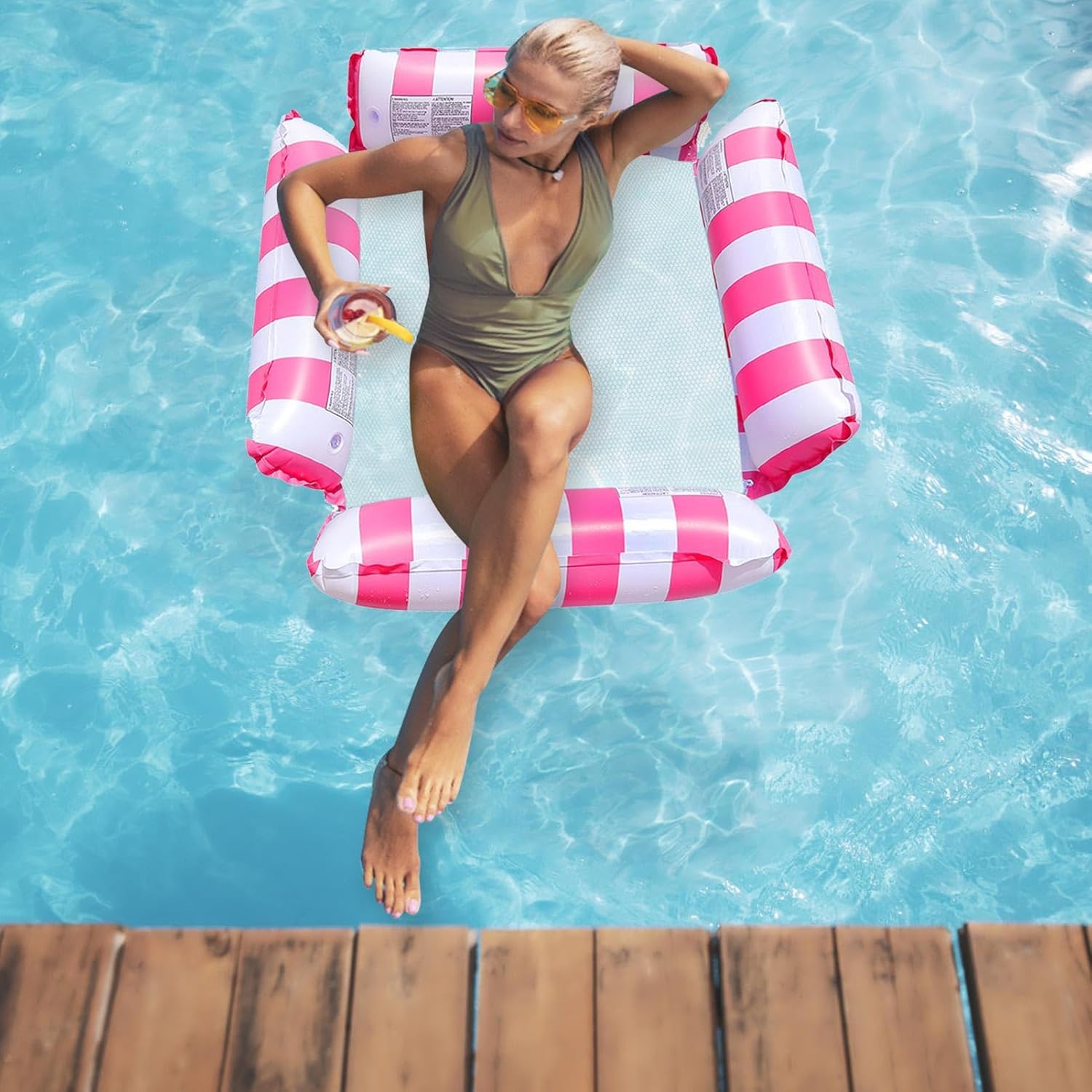 Amaca galleggiante a quattro tubi: l'amaca galleggiante per piscina è più di una semplice sedia a sdraio. È dotato di una fila di remi galleggiante a quattro tubi che sopporta fino a 250 libbre di peso e consente di cambiare la posizione sull'acqua. PVC + rete di nylon: la piscina galleggiante Hammock Chair realizzata in PVC ecologico e rete di nylon, che è durevole e non si deforma facilmente. Puoi goderti l'acqua senza temere che affondi o si spezzi. Gonfiaggio rapido e senza sforzo: l'amaca galleggiante gonfiabile è dotata di valvole d'aria che ti permettono di gonfiarla in un batter d'occhio. Non è necessario farlo saltare in aria o utilizzare una pompa. Basta aprire le valvole e lasciare entrare l'aria. Quando hai finito, puoi scaricare l'aria e semplicemente piegarla. Rilassa e raffredda meglio il tuo corpo: con l'amaca galleggiante per piscina puoi rilassare meglio il tuo corpo e rimanere fresco in acqua. Il suo design semi-immerso aumenta il contatto con l'acqua e garantisce un'esperienza rinfrescante. Goditi diverse impostazioni dell'acqua: il galleggiante per piscina Water Hammock è ideale per rilassarsi o fare rafting in diversi ambienti acquatici. Con questa amaca da piscina puoi divertirti in vacanza, in piscina, laghi, spiagge e molto altro ancora.