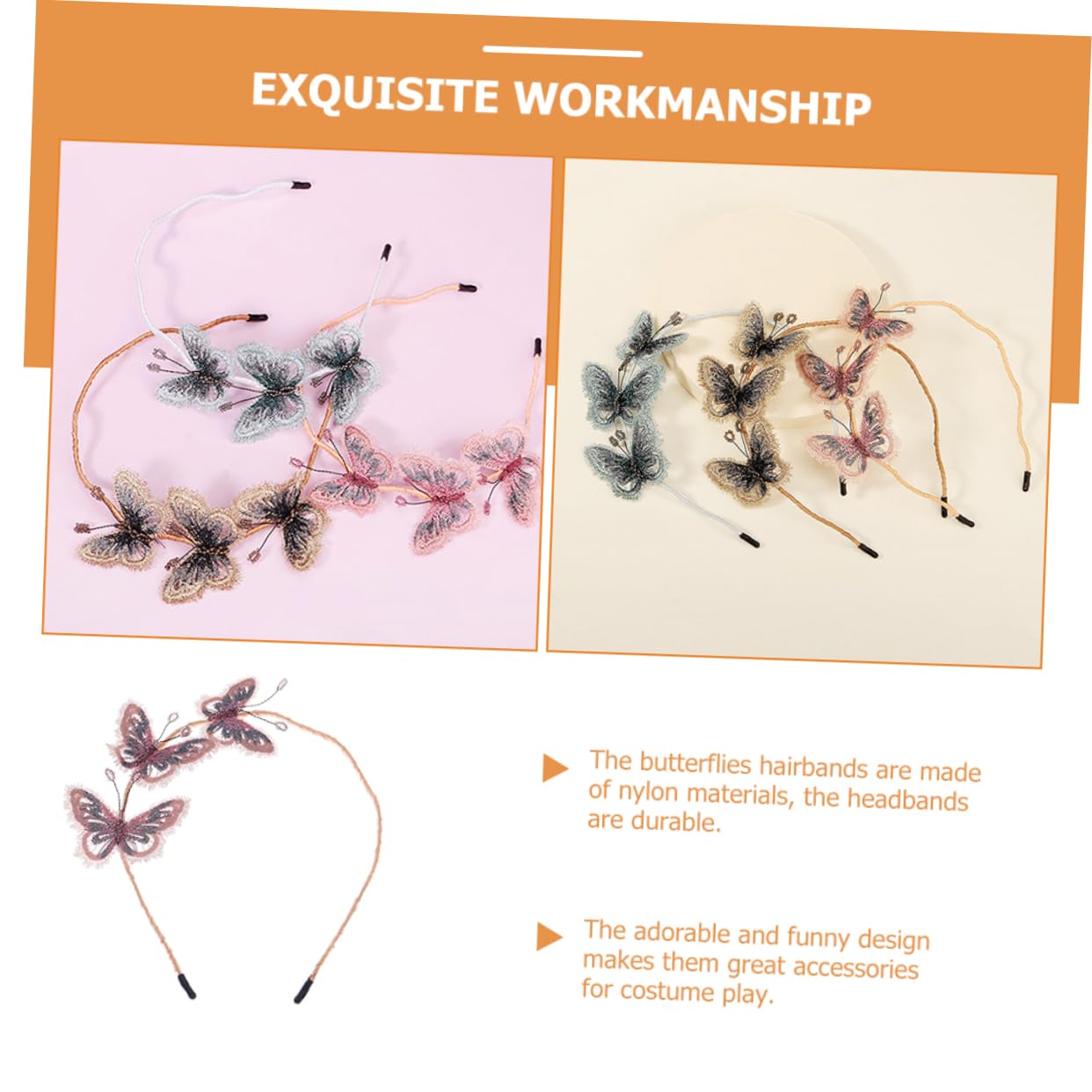 Fasce per capelli con farfalle: grazie all'eccellente lavorazione, sembrano squisite e leggere, sicure e comode da indossare. Elastici per capelli per bambini: è ora di vestirsi per la festa in maschera con il nostro copricapo, che ti lascerà un ricordo indimenticabile della festa. Abbigliamento per ragazze: può essere utilizzato anche per amici e familiari, attività di festival, feste o nella vita di tutti i giorni. Costumi per ragazze: sono anche una serie di accessori fotografici creativi che possono rendere la tua foto più divertente e attraente. Fasce per capelli per bambini: perfette per i tuoi amici, molto divertenti e creative, ti piaceranno le fasce per capelli progettate con cura.