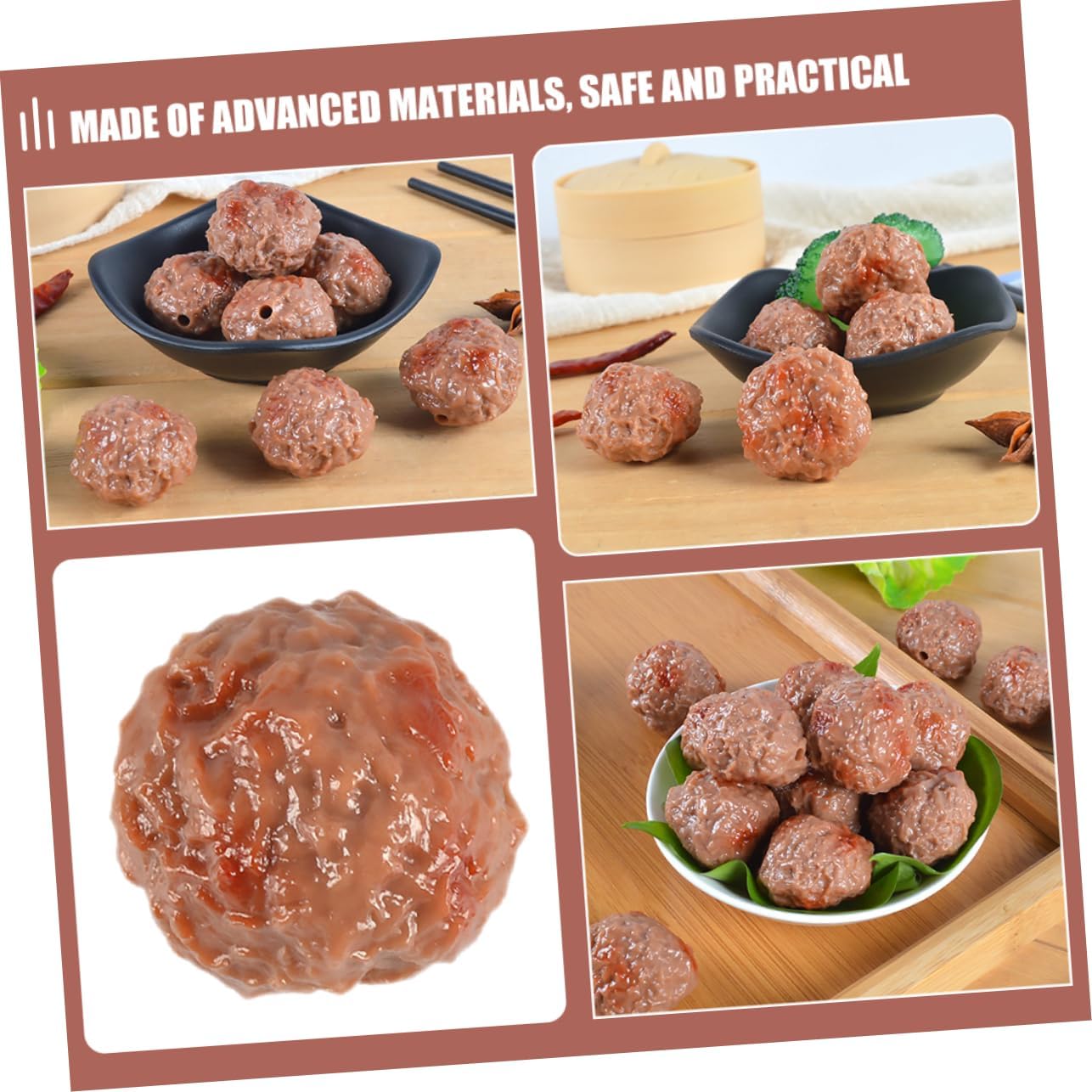 Modello di polpetta di manzo fotografica - utilizzato per oggetti di scena, oggetti di scena cinematografici e televisivi, decorazioni di negozi di polpette di manzo, ecc., oggetti di scena per alimenti da esposizione Oggetti di scena per alimenti artificiali - adatti per ristoranti, hotel, musei, il modello di una polpetta di manzo artificiale è un ottimo oggetto di gioco, una polpetta di manzo cotta artificiale Espositore di cibo artificiale - può essere utilizzato a lungo e conservato senza causare danni o cambiamenti di colore. Esposizione di cibo artificiale Simulazione di polpette di manzo: rinfrescerà la tua casa e ti porterà buon umore, è molto divertente e realistico, un'esposizione di cibo artificiale Giocattoli alimentari realistici: oggetti di scena per l'insegnamento in età prescolare, giocattoli complicati, fotografie, oggetti di scena per film. Può essere una buona decorazione per la cucina, decorazione realistica di polpette di manzo