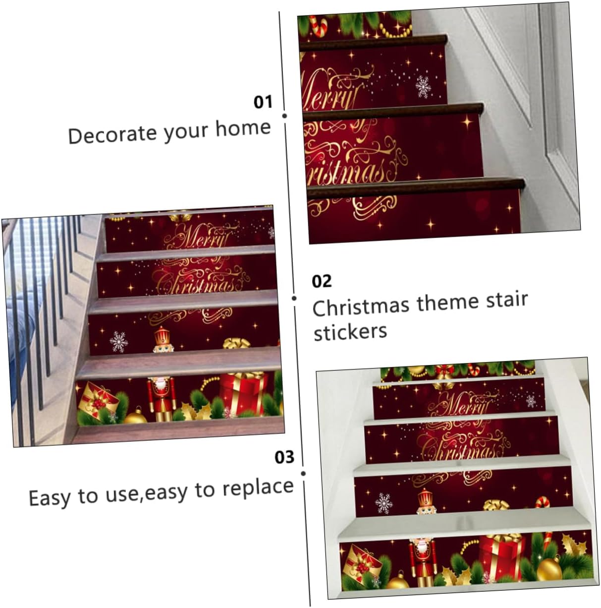Adesivo per pavimenti - facile da usare, dona alla tua casa un nuovo aspetto, Adesivo per scale natalizio Adesivo in PVC non sbiadito - elegante e bello, la migliore decorazione per Natale, adesivo decorativo per scale Adesivo natalizio - questo adesivo per scale si adatta a qualsiasi superficie liscia, piatta, asciutta e priva di polvere, un'ottima idea per illuminare la tua casa, adesivo per scale Adesivo per scale natalizio - perfetto per decorare qualsiasi luogo come camera da letto, soggiorno, cucina, parete del balcone, ecc., adesivi per scale autoadesivi Adesivi per scale natalizie - motivo creativo e delicato che è adesivi per scale molto realistici per Natale