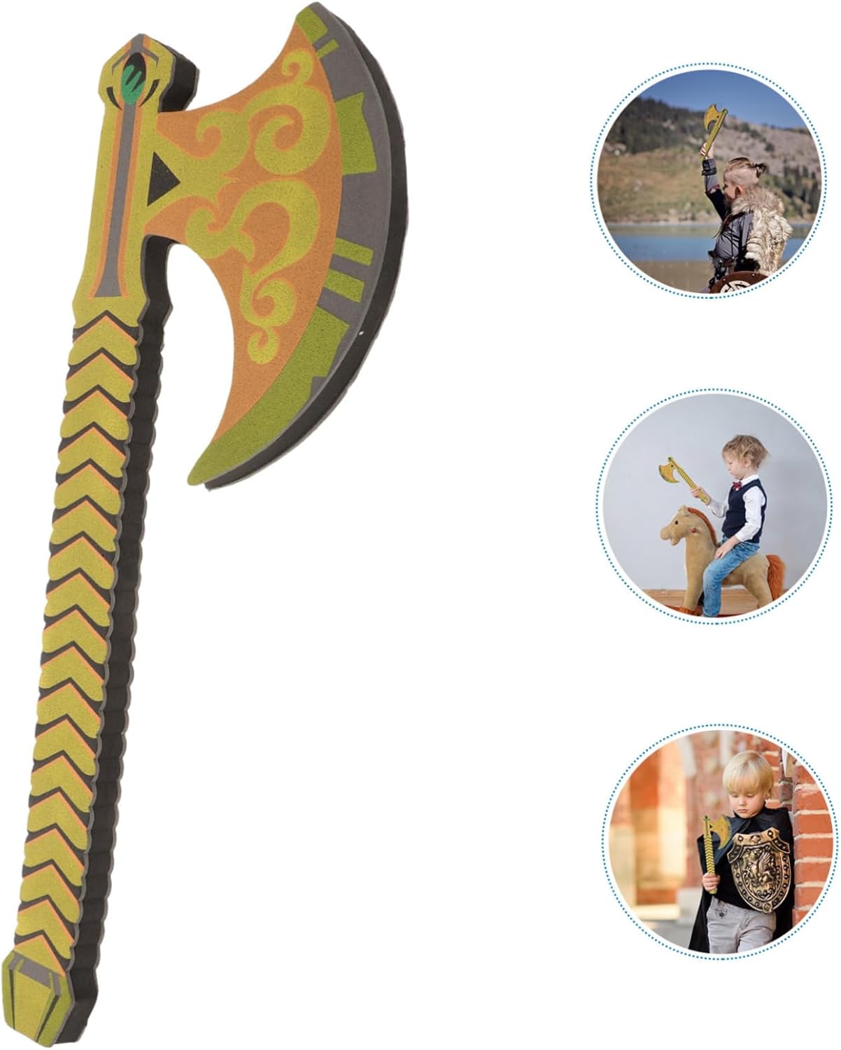 Ascia in schiuma per cosplay: il regalo della festa può essere utilizzato come regalo di Halloween o festival da inviare agli amici e portarli molto più divertenti, giocattolo con ascia in schiuma Giocattolo in schiuma: il materiale è sicuro e leggero, resistente all'usura e pratico per un uso duraturo. Puntello per ascia da addestramento: questa ascia in schiuma è comoda da riporre e trasportare. puoi portarli con te quando esci a giocare. Ascia da allenamento per la scherma Oggetti di scena per la scherma: possono essere utilizzati per una serie di sport di intrattenimento per bambini, attività di campeggio e un'entusiasmante varietà di fantastici giochi di società, oggetti di scena Oggetti di scena per cosplay: caratteristici e raffinati con un design realistico, vintage e generosi, linee morbide, oggetti di scena per feste