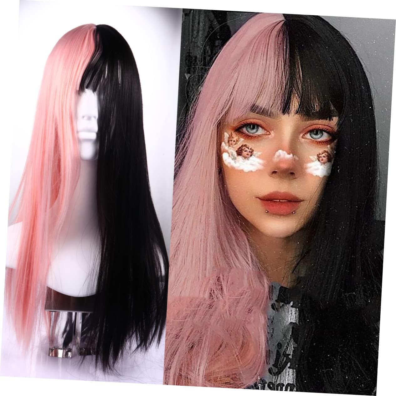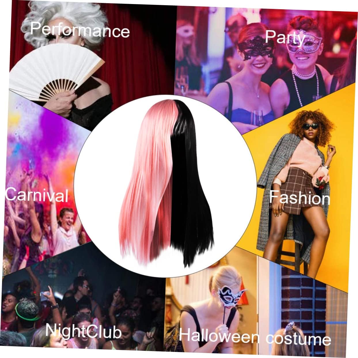 Parrucche da festa - realizzate in materiale sintetico, resistenti e Parrucche nere per donne: perfette per halloween, concerti, feste in maschera, feste a tema, cosplay, appuntamenti e qualsiasi occasione, extension per Parrucche lunghe e lisce: questa parrucca è adatta al colore della pelle, sintetici neri Parrucche colorate: un fantastico per il tuo amante, la tua famiglia, i tuoi amici e i tuoi colleghi, parrucche divertenti per le feste Parrucche per cosplay di ruolo e parrucca lunga rosa con lavorazione raffinata e alla moda, parrucche colorate