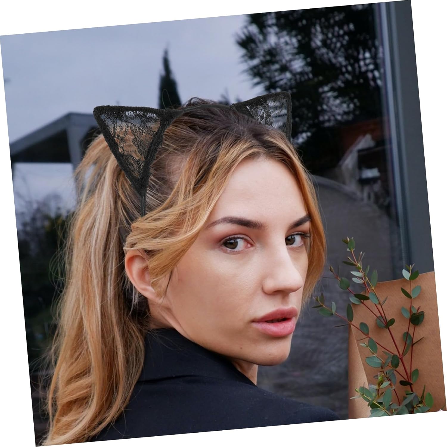 Costume orecchie da gatto – colore: principalmente nero. Materiale: metallo superiore resistente. Elastico per capelli nero: divertente fascia in metallo con orecchie da gatto in pizzo. Fascia per capelli in pizzo con filo - lunghezza dell'orecchio di gatto: ca. 4,7 cm/1,9 pollici. Top nero: taglia unica per la maggior parte delle donne e delle signore. Orecchie di volpe - circonferenza della fascia: ca. 40 cm/15,7 pollici.