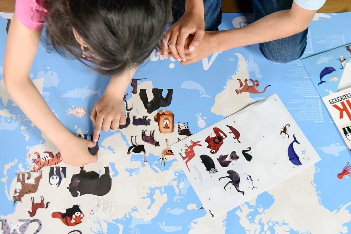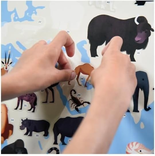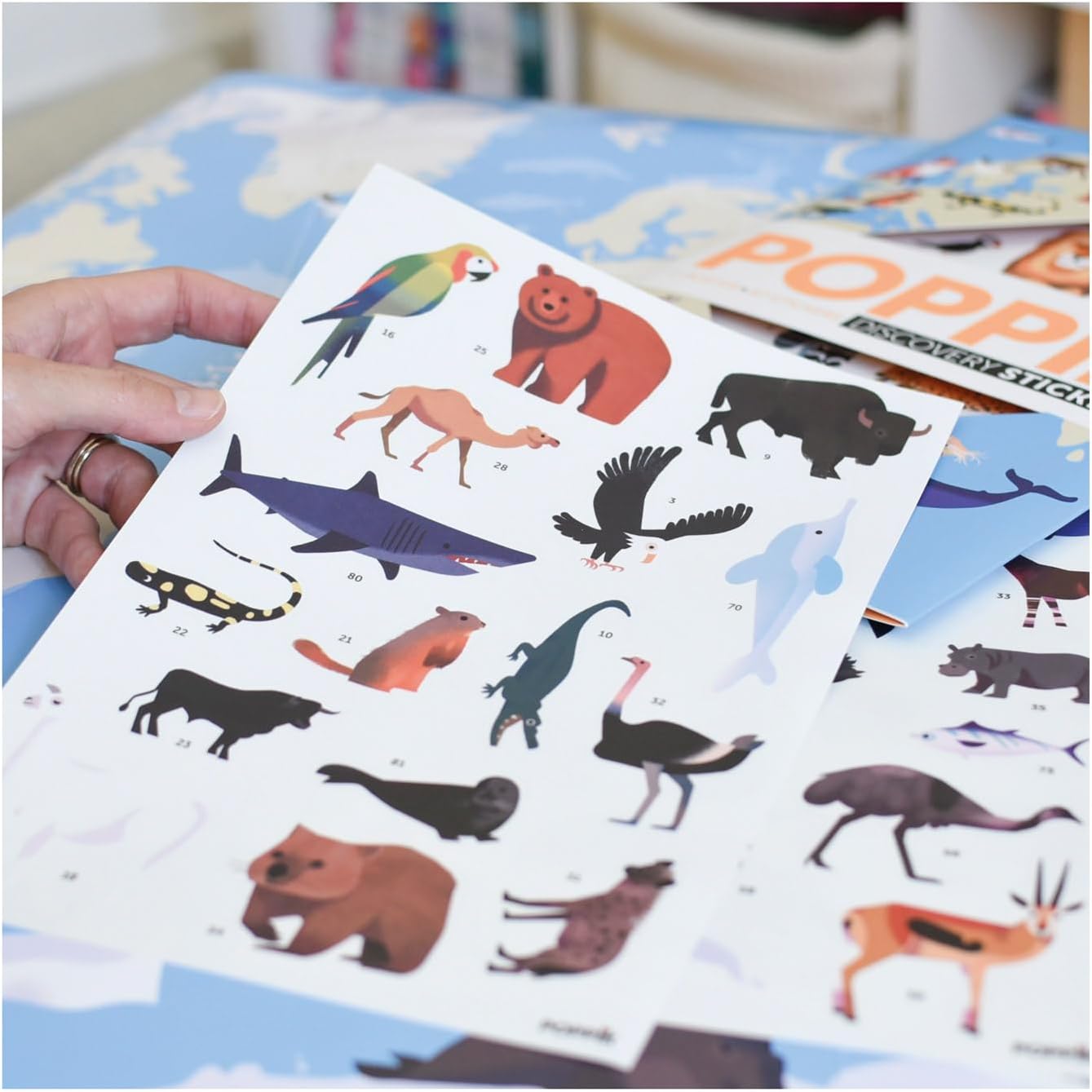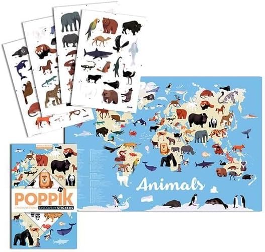 UN POSTER EDUCATIVO CREATIVO E DIVERTENTE - Partecipa allo sviluppo creativo e intellettuale del tuo bambino offrendo questo poster per bambini POPPIK Animali del Mondo! Questa attività in gommette occupa intelligentemente: il tuo bambino memorizza il nome di oltre 70 animali e la regione del mondo in cui vivono manipolando gli adesivi. OCCUPARSI A CASA Lontano dagli Schermi - Questo gioco da tavolo per bambini sembra un vero puzzle in adesivi, o una colorazione in gommette. Promuove la concentrazione e la calma, per lunghi momenti (i genitori adorano), allena l'applicazione, sviluppa la sensibilità artistica e valorizza il bambino con il suo risultato bluffante. Semplice e senza degatti: l'attività in gommette è facile anche per i bambini che non sono molto manuali. I bambini possono così divertirsi (da soli o a molti) senza l'aiuto degli adulti per ore! Inoltre, questi adesivi sono riposizionabili e permettono al bambino di riprendersi in qualsiasi momento. Adatto per 5-12 anni. Ideale per decorare, giocare e ammirare. - Una volta completata l'attività adesiva, il bambino potrà appendere con orgoglio la sua creazione al muro, nella sua camera da letto o altrove, per ammirarlo. Mettilo in una fisarmonica su un tavolo e si trasforma in un ambiente di gioco! Il tuo bambino potrà giocare con le sue figurine, e inventare un intero mondo immaginario! UNA ATTIVITÀ ORIGINALE E RESPONSABILE - POPPIK è una nuova attività creativa chiamata "sticker art", cioè l'arte di creare con decine, centinaia o migliaia di adesivi. Prodotto in Unione Europea (Spagna), tutti i nostri poster creativi per bambini sono conformi alla norma CE senza ftalati.