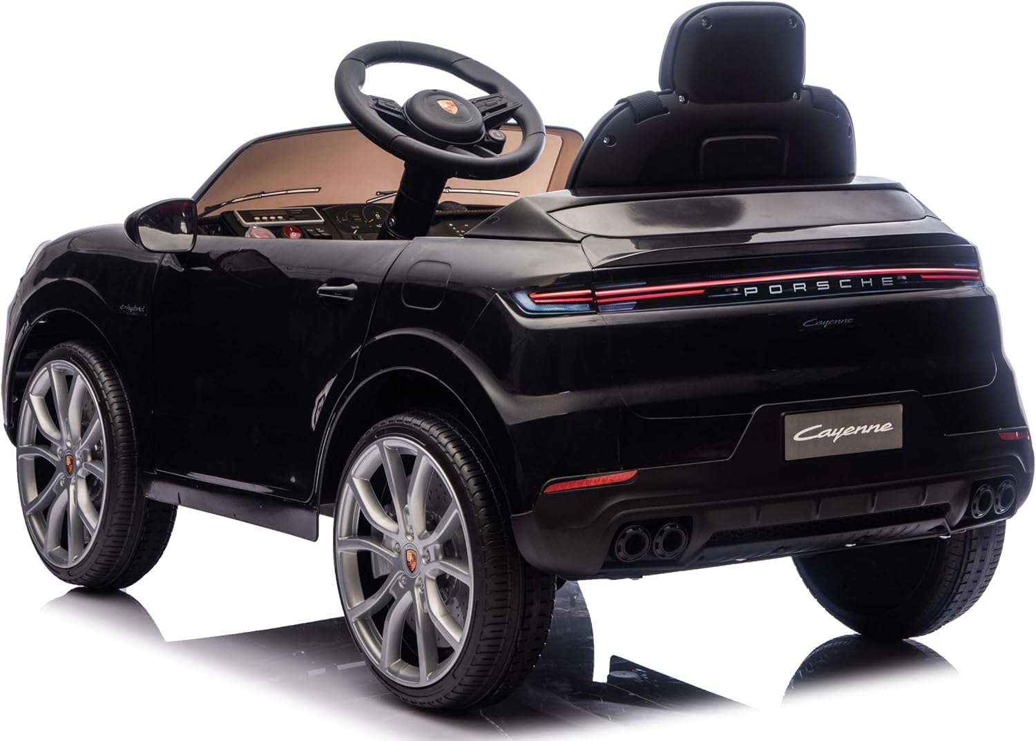 🔖 LICENZA UFFICIALE PORSCHE CAYENNE – Auto elettrica per bambini 12V fedele al modello originale, con loghi e dettagli autentici Porsche. Un mini SUV di lusso dal design realistico e curato in ogni particolare, ideale come regalo esclusivo 🎮 GUIDA MANUALE O CON TELECOMANDO – Il bambino può guidare con pedale, volante e marce avanti/indietro, oppure i genitori possono guidare a distanza con telecomando parentale 2.4G dotato di 3 velocità, retromarcia e sterzo fino a 10 metri 🛡️ SICUREZZA AL PRIMO POSTO – Sedile ergonomico antiscivolo con cintura di sicurezza a 3 punti per maggiore stabilità, fari LED anteriori e sistema Soft Start per partenze graduali senza scossoni, così da non spaventare i più piccoli. Gli sportelli apribili con chiusura sicura rendono l’esperienza più realistica e permettono al bambino di salire e scendere in totale sicurezza 🎵 DIVERTIMENTO MULTIMEDIALE – Cruscotto interattivo con Bluetooth, MP3, USB, Radio FM e TF CARD, per collegare la musica preferita. Melodie attivabili dal volante e volume regolabile per un’esperienza di guida ancora più coinvolgente 🚙 RUOTE RINFORZATE E AMMORTIZZATORI REALI – Le ruote con battistrada maggiorato offrono maggiore aderenza, mentre gli ammortizzatori su tutte e 4 le ruote garantiscono stabilità e comfort anche su superfici erbose, ghiaiose o strade pianeggianti. Un’esperienza di guida fluida e sicura su ogni terreno. Peso massimo supportato 28 KG 🔋 BATTERIA POTENTE E DUE MOTORI 12V – Equipaggiata con una batteria 12V- rinforzata e due potenti motori da 12V, questa Porsche Cayenne per bambini offre forza, affidabilità. Dimensioni: 103 × 63 × 54 cm Caricabatterie incluso Batteria e Caricabatteria Inclusi