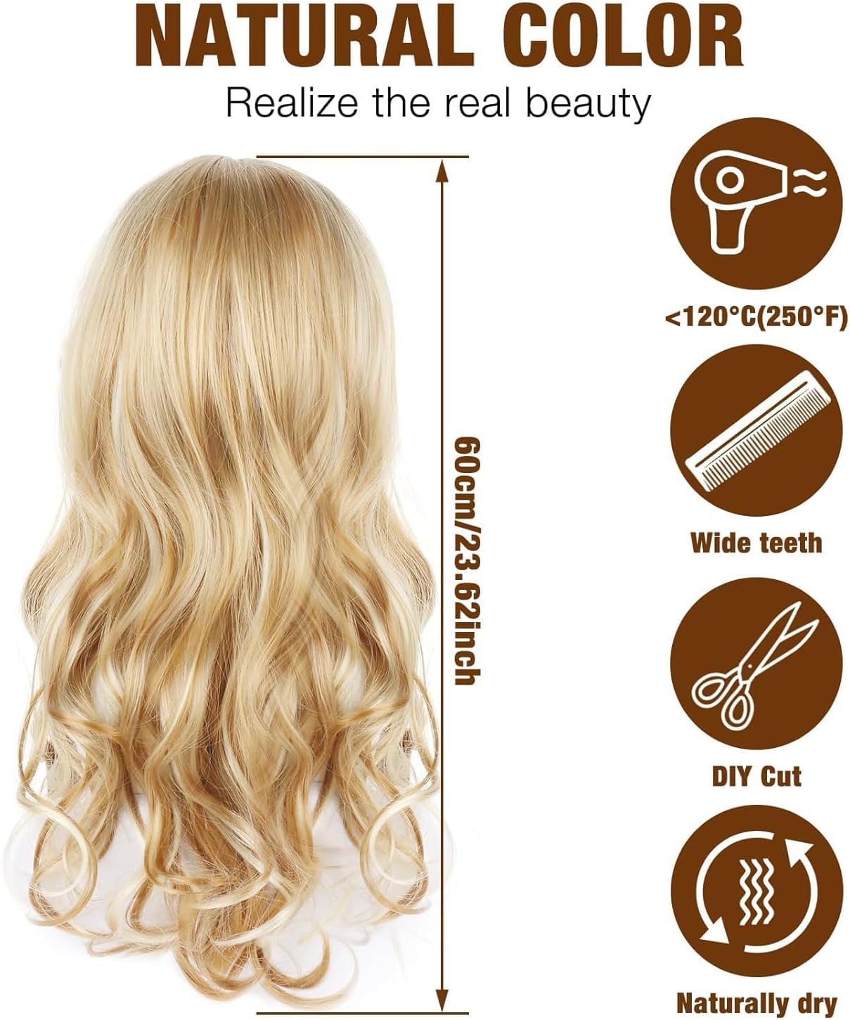 Parrucca naturale: questa affascinante parrucca morbida e naturale. I capelli hanno un bel spessore e peso ad esso, e le fibre si sentono bella e morbida, senza aggrovigliarsi facilmente hanno anche una parte naturale e anteriore. Si può indossare per l'uso quotidiano, feste in costume, cosplay, appuntamenti, moda o semplicemente per divertimento. Riceverete un aspetto realistico e naturale. Materiale sano: questa parrucca utilizza fibra Kanekalon adatta per un uso a lungo termine ed è il miglior materiale in fibra per parrucche. Sembra completamente naturale, setoso e liscio come veri capelli umani, morbidi al tatto, facili da pettinare, minimo spargimento e groviglio. Cuffia regolabile per parrucca: utilizza una rete traspirante all'interno della rete, che ti fa sentire a tuo agio quando la indossi. La taglia media della cuffia è di 22,5 pollici. Ci sono due cinghie regolabili all'interno della parrucca che possono essere intrecciate in una posizione fissa per adattarsi a diverse dimensioni della testa. Specifiche: 1 parrucca + 1 cuffia per parrucca. Si prega di notare: tutte le parrucche si spargono facilmente, soprattutto quando si indossa per la prima volta, cosa normale. Ci sono alcune differenze di colore a causa della luce e del monitor. 【30 giorni di resi gratuiti】- Ci dedichiamo a fornire le migliori parrucche e servizi. Testiamo attentamente ogni parrucca prima della spedizione. Gli articoli possono essere restituiti entro 30 giorni dal ricevimento della consegna. Se avete suggerimenti o domande, vi preghiamo di contattare il team di assistenza clienti, vi saremo al servizio e vi daremo una soluzione soddisfacente entro 24 ore.