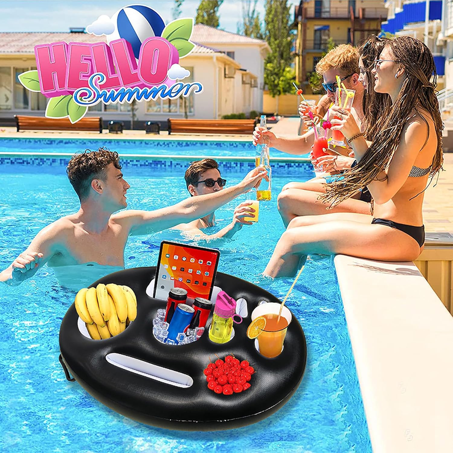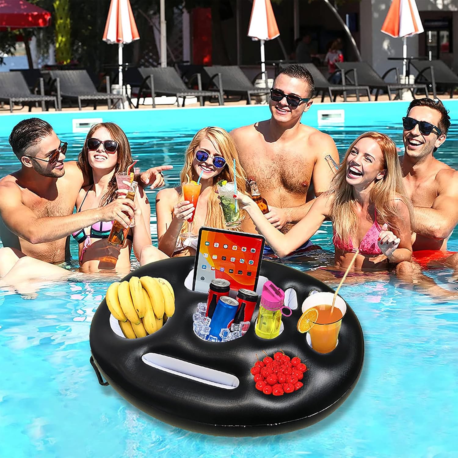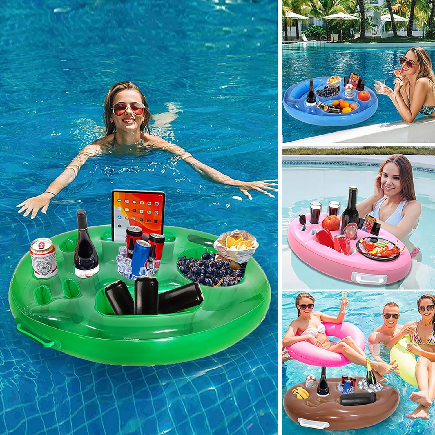 Design versatile: il nostro portavivande galleggiante, noto anche come portabevande galleggiante, è l'accessorio perfetto per le feste in piscina o le fughe in spiaggia. Può contenere bevande, vino, birra, snack, cibo, telefoni cellulari, ecc. Nella piscina, che è gonfiabile, pieghevole e portatile. Materiali premium: realizzato in PVC spesso di alta qualità, il nostro porta alimenti galleggiante garantisce durata, sicurezza e morbidezza. Facile da trasportare e riporre: comprendiamo l'importanza della praticità, ecco perché il nostro portabevande da piscina è progettato per essere leggero e facilmente pieghevole. Dopo lo sgonfiaggio, occupa uno spazio minimo, permettendoti di trasportarlo senza sforzo in spiaggia, in piscina o alla spa. Inoltre, le sue dimensioni compatte lo rendono facile da riporre quando non in uso. Adatto a diversi ambienti: che tu stia pianificando una festa in piscina, una vacanza al mare nel fine settimana o semplicemente godendoti un po' di tempo nella vasca idromassaggio o nella spa, il nostro supporto galleggiante è il compagno perfetto. La sua versatilità ne consente l'utilizzo in diversi ambienti acquatici, assicurandoti di avere sempre a portata di mano i tuoi snack e le tue bevande preferite. Indispensabile per una festa in piscina: organizzare una festa in piscina? Il nostro portavivande galleggiante è un oggetto indispensabile per migliorare l'esperienza complessiva. I tuoi ospiti rimarranno colpiti dalla praticità e dallo stile che apporta all'evento. Fai un tuffo e goditi una giornata spensierata a bordo piscina con il nostro innovativo portavivande galleggiante.