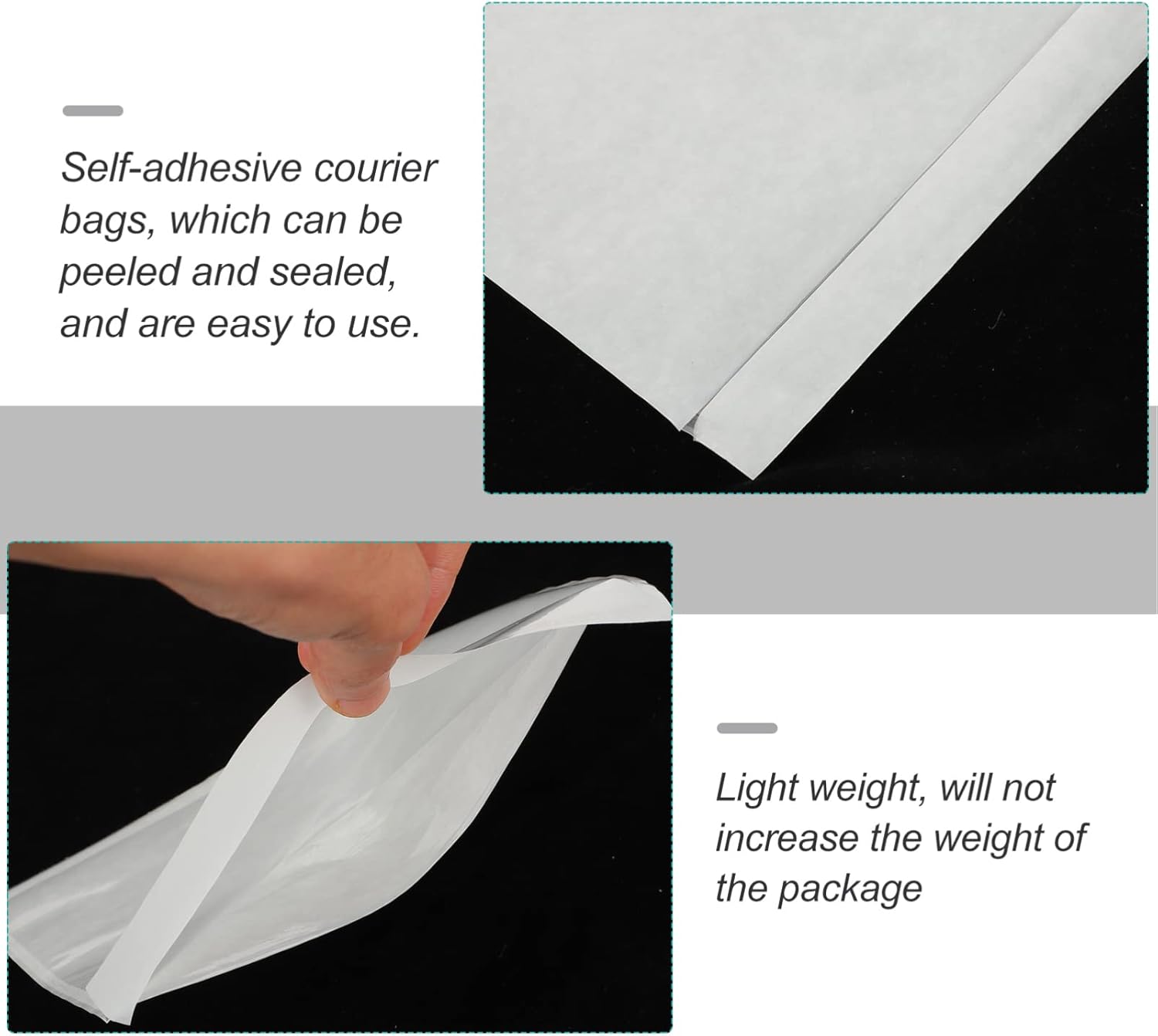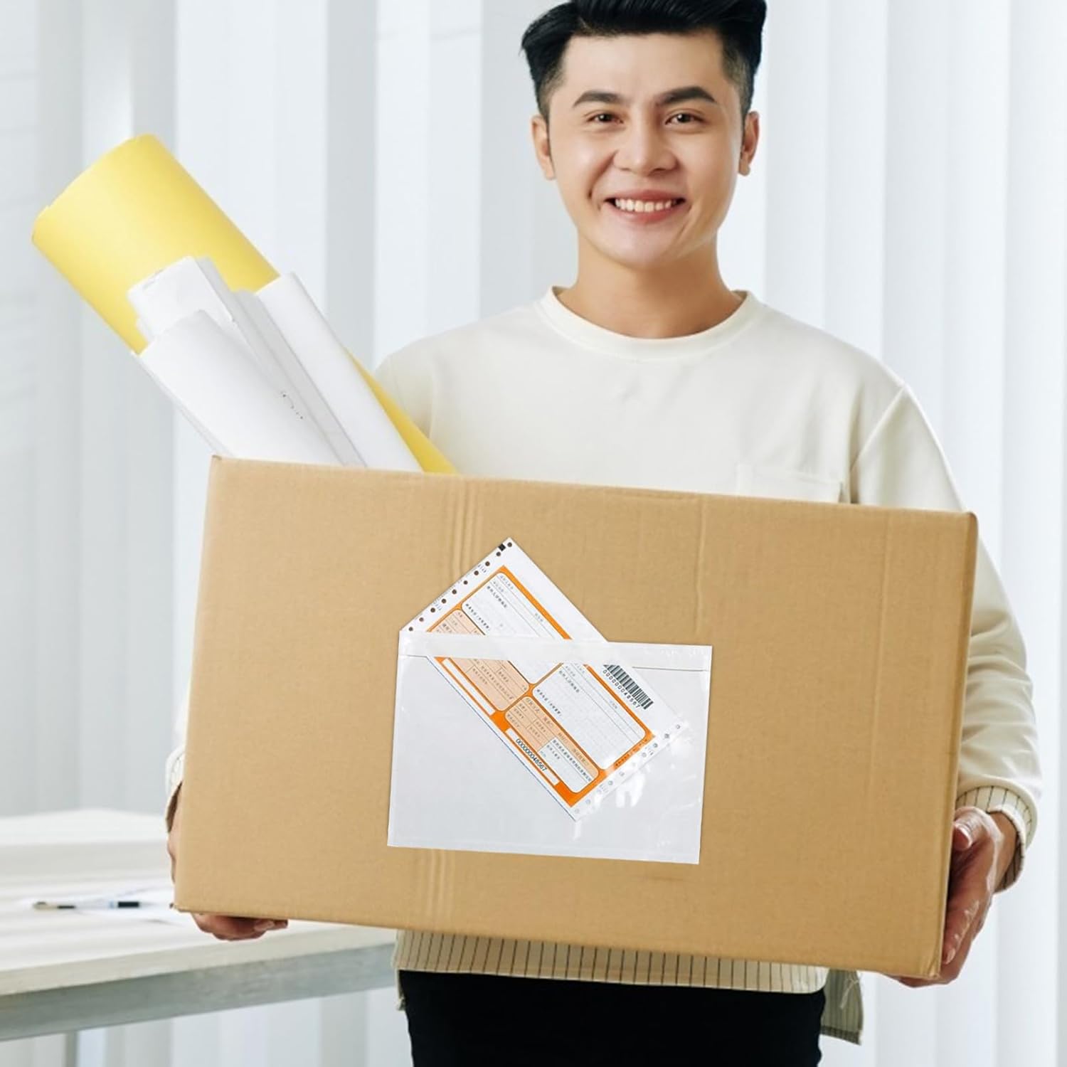 Realizzato in materiale PE premio, non ha odore e buona tenacia. Puoi usarlo con fiducia. Con la funzione impermeabile, può mantenere intatta la fattura o la ricevuta e non sarà rotta a causa della pioggia. Particolarmente adatto a tutti i tipi di aziende espresse o diretta Express. È un buon aiutante per il trasporto di articoli a lunga distanza e espressa, contribuendo a mantenere l'integrità della espressa. È leggero in peso e non aumenterà il peso del pacchetto, che è molto conveniente.
