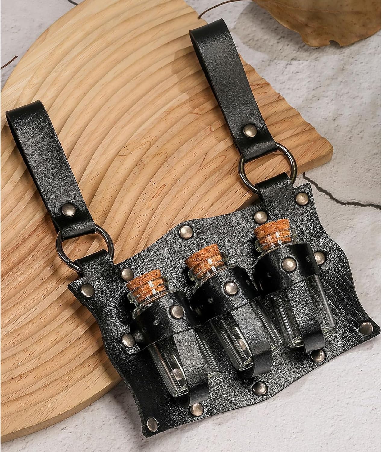 Borraccia medica in ecopelle degli alchimisti medievali con una forte atmosfera magica antica, unica aggiunge senso di mistero. È costituito da componenti in ecopelle, sensazione di comfort e forte durata. 3 borracce in sughero medicale in grado di contenere diversi tipi di liquidi; squisito artigianato con attenzione ai dettagli. Persone che amano la cultura medievale, i giochi fantasy e il collezionismo di decorazioni. Come decorazione domestica su librerie e scrivanie.