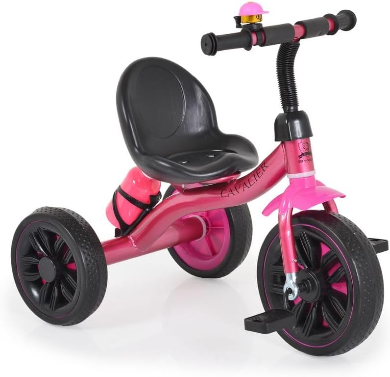 triciclo per bambini a partire da 3 anni e con un peso massimo di 25 kg comodo sedile con schienale alto, campanello in metallo fissato al manubrio, comodo manubrio con rivestimento antiscivolo realizzato con materiali di alta qualità, design sportivo Pneumatici EVA, portabevande e borraccia inclusi nella consegna