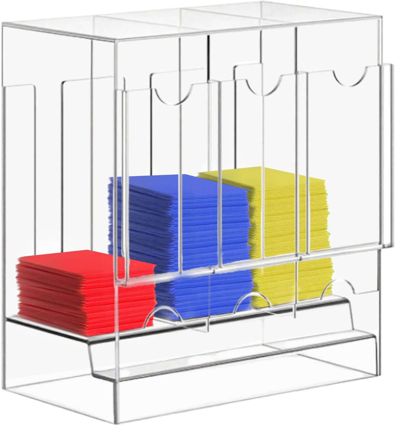 Utilizzo Intuitivo: Facilita il riempimento veloce con configurazioni di display flessibili e setup organizzato, promuovendo accesso immediato ed estrazione per una migliore usabilità del dispensatore di booster pack di organizzazione categorizzato: Offre agli appassionati di carte una soluzione pratica consentendo una gestione efficiente delle collezioni personali e garantendo un adattamento versatile a diverse esigenze di archiviazione Flessibilità d'Uso: Progettato per massima efficienza, il layout multilivello con file regolabili mantiene un aspetto ordinato e pronto alla visualizzazione, semplificando la gestione giornaliera degli spazi Design : La struttura compatta a 3 scomparti massimizza l'organizzazione conservando i set di carte in modo sicuro e ordinato, con dimensioni standardizzate che garantiscono piena compatibilità con le misure universali dei blister per carte collezionabili Materiale di lunga durata: Realizzato in acrilico trasparente, offre visibilità eccellente dei contenuti, abbinando praticità ed estetica raffinata, con una costruzione che assicura performance durevoli e resistenza nel