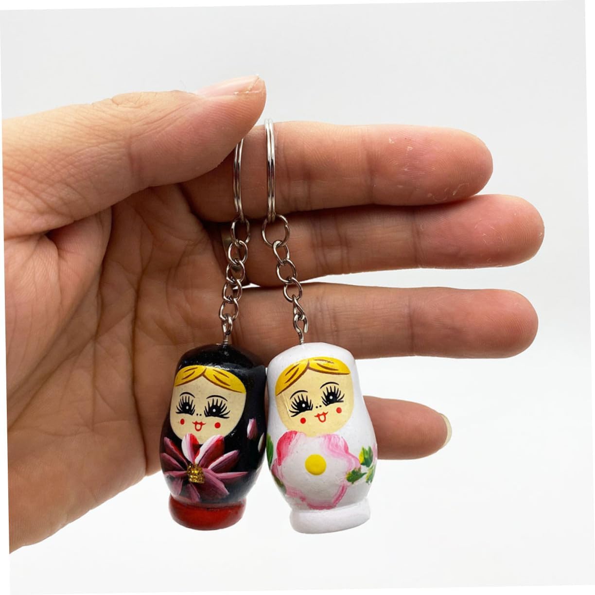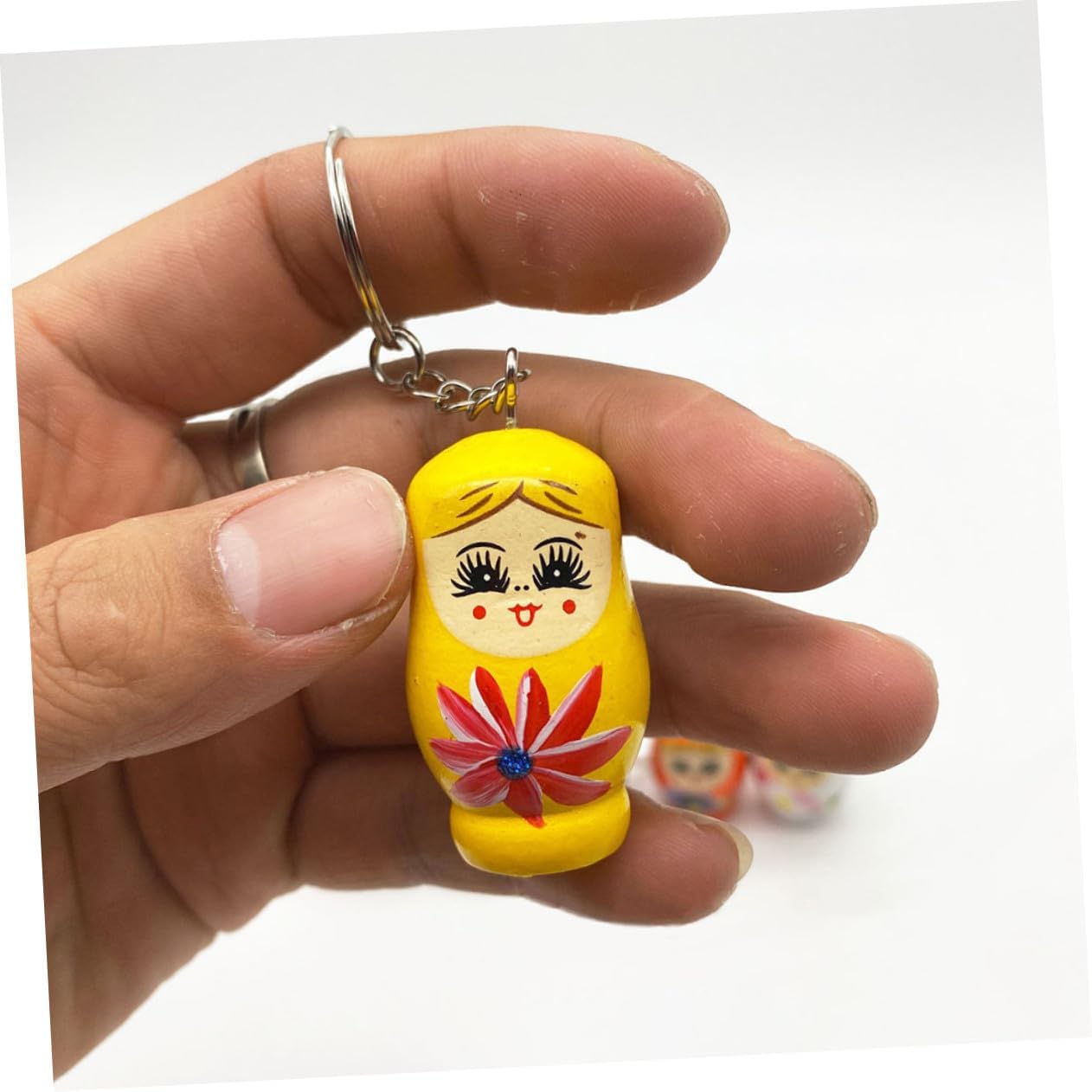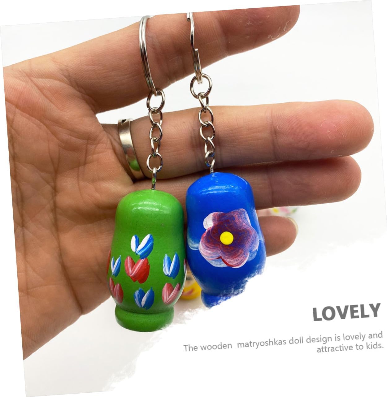 Portachiavi in legno: è piccolo e leggero e può essere portato facilmente e comodamente con sé per poterlo portare ovunque. Portachiavi con dipinti colorati Decorazione chiave: realizzato in materiale di legno di alta qualità, disegnato con un colorato dipinto di cartone animato a forma di bambola, è un affascinante portachiavi in legno Portachiavi in legno: compagno perfetto per le tue chiavi, borse o altri oggetti meravigliosi, portachiavi in legno Portachiavi in legno: aspetto liscio e alla moda, questo ciondolo per borsa è unico e bellissimo, portachiavi in legno Portachiavi con dipinto colorato: può essere usato come ciondolo per cellulare o borsa e può essere appeso ovunque. Bellissimo e pratico portachiavi in legno
