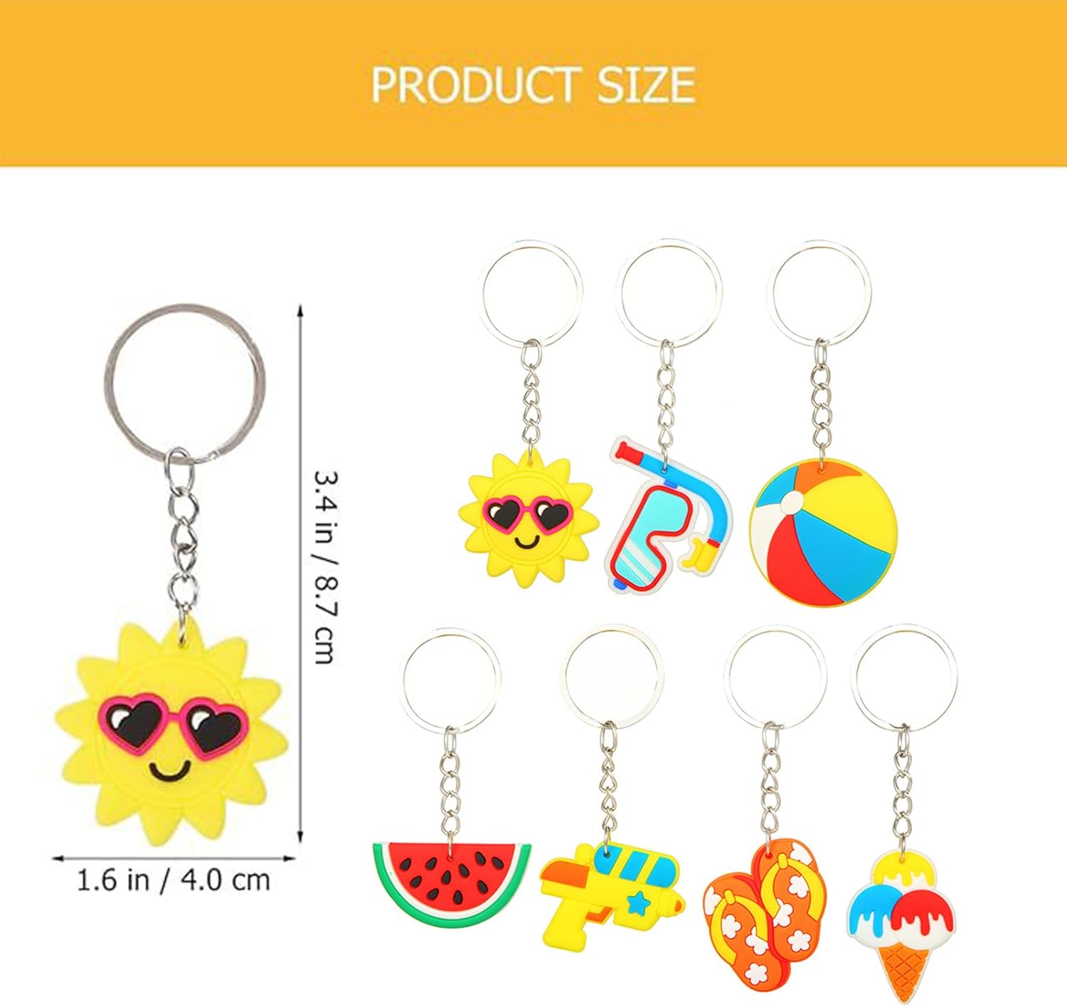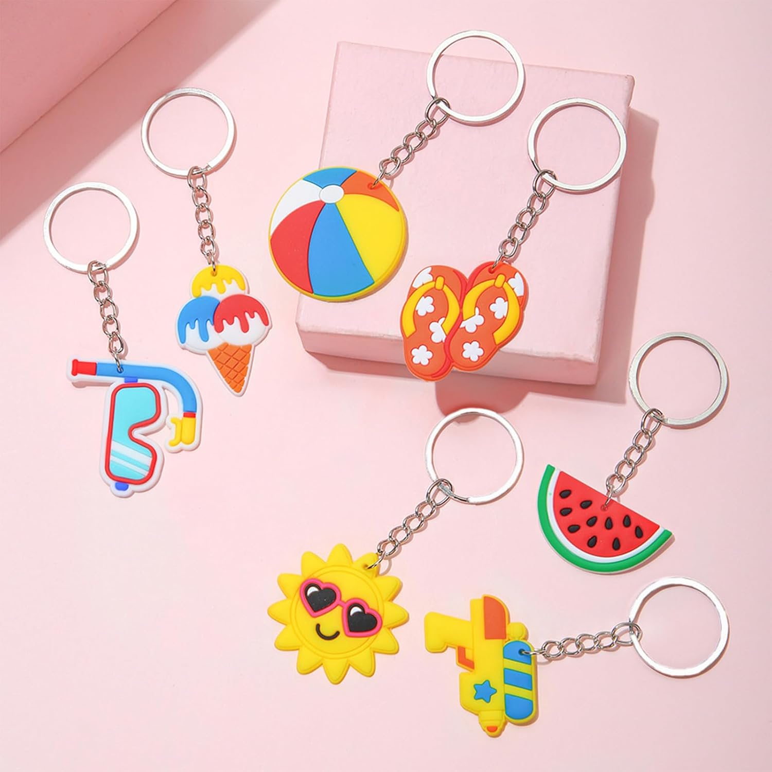 Bomboniere per bambini: include 7 portachiavi per feste in piscina per bambini in 7 modelli diversi, quantità sufficiente per la tua festa o da condividere con amici o compagni di classe. Portachiavi hawaiano: questo portachiavi per bambini ha un adorabile motivo a cartoni animati, come sole, infradito, palloni da spiaggia, anguria, gelato, ecc. Materiale portachiavi: i graziosi portachiavi estivi sono realizzati in morbida gomma e lega di zinco, che sono durevoli e robusti, leggeri e flessibili. Dimensioni dei portachiavi per feste hawaiane: la dimensione di ogni simpatico portachiavi presenta una leggera differenza, circa 10x5 cm. Piccolo e carino da appendere allo zaino, allo zaino, al portachiavi, alle borse, ecc. MULTIUSO: questo simpatico portachiavi hawaiano è un ottimo regalo per i bambini, perfetto come regalo di compleanno, regalo di Natale, regalo di rientro a scuola, ecc. Sono anche un'ottima idea regalo per feste di compleanno di ragazzi e ragazze, feste di Natale, feste estive a tema sulla spiaggia, feste hawaiane, ecc.