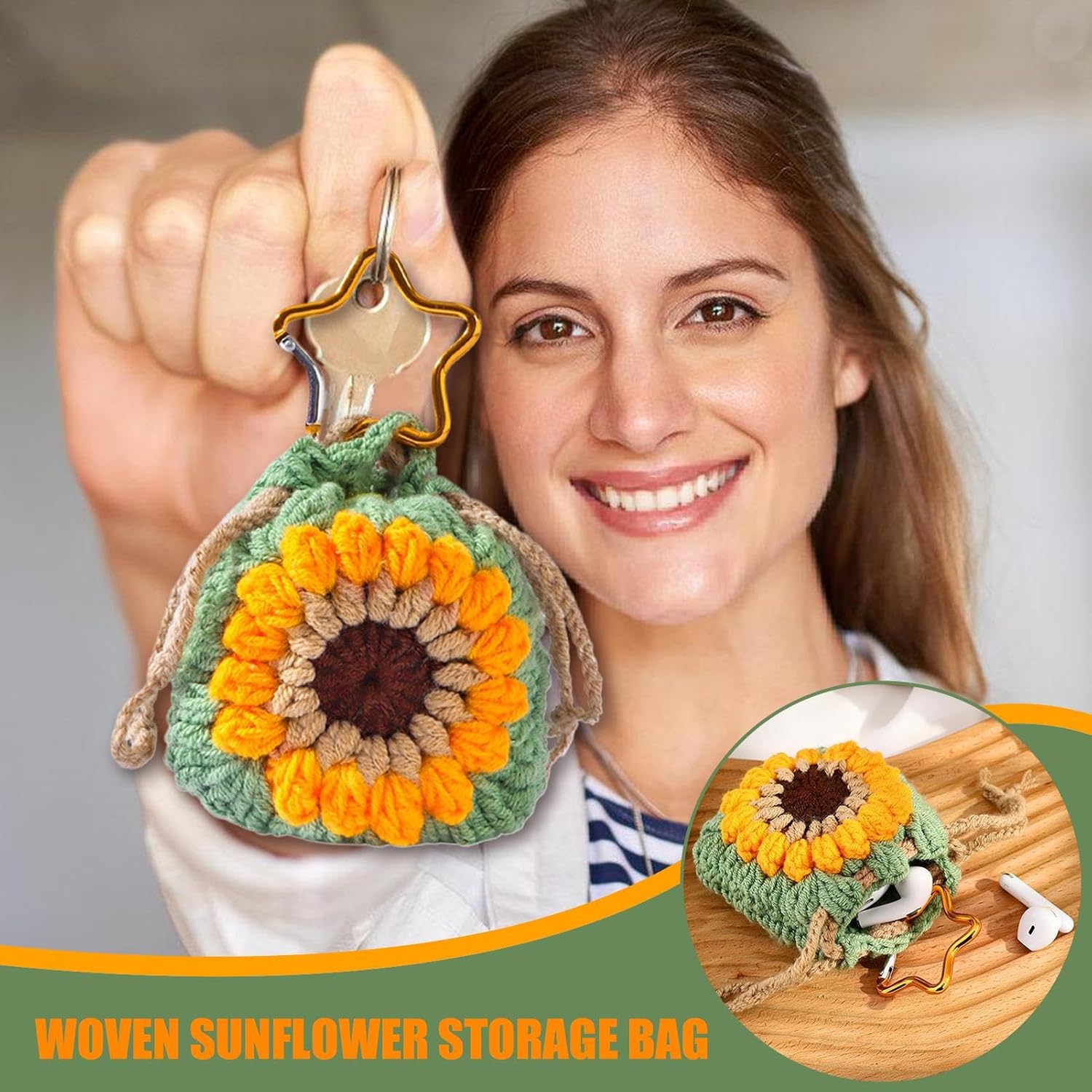 Lavoro meticoloso: questa borsa girasole è realizzata con petali annodati a mano, utilizzando lana di alta qualità per un design delicato e visivamente accattivante. Ogni dettaglio è pensato per attirare l'attenzione con il suo aspetto realistico ed elegante per l'uso quotidiano e aggiungere un tocco di originalità ai tuoi accessori moda. IDEALE PER I VIAGGI: Progettato con un gancio in metallo resistente per un fissaggio rapido, questo portafoglio compatto dalle dimensioni ridotte migliora la portabilità quotidiana. Questa è una soluzione pratica per organizzare le tue monete e oggetti personali in un formato elegante e facile da trasparente adatto alle tue esigenze di viaggio Rivitalizzazione dei colori: Scopri la bellezza della vitalità naturale associata ai vivaci girasoli gialli e alle fresche foglie verdi per uno stile solare che rompe senza sforzo la monotonia grazie ai suoi colori energizzanti che trasformano i tuoi soliti oggetti in veri accenti di gioia e positività Materiali durevoli: durevoli, con lana resistente all'usura, anelli robusti e materiali robusti, tutti fissati con cuciture solide per fornire prestazioni costanti e mantenere il suo aspetto elegante anche dopo un uso prolungato. Regalo meraviglioso: un regalo riflettente per tutte le occasioni, questo portafoglio portachiavi combina design pratico e uso versatile. Che sia per un compleanno o per una festa di laurea, questo accessorio diventerà presto indispensabile. È sufficiente portarlo ovunque poiché è abbastanza funzionale per soddisfare le tue esigenze quotidiane. Un regalo che delizierà coloro che vogliono unire semplicità ed efficienza nei propri accessori.