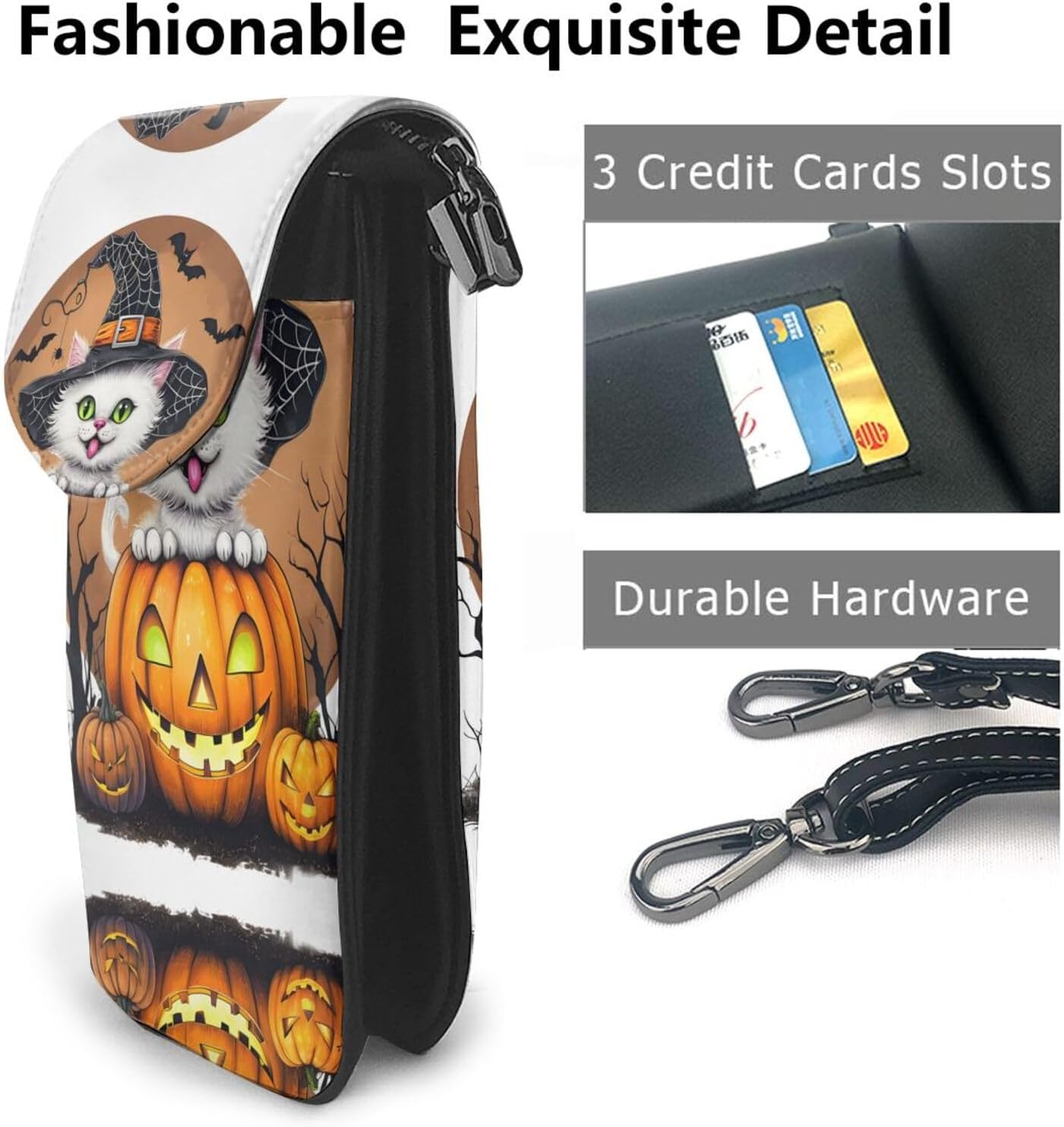 Gattino di Halloween in morbida ecopelle di ALTA QUALITÀ: realizzato in pelle PU impermeabile di alta qualità, questo portafoglio per telefono a tracolla è morbido, durevole e resistente all'usura. L'esterno sottile e il rivestimento liscio proteggono il tuo telefono da graffi e danni, rendendolo perfetto per l'uso quotidiano. CHIUSURA MAGNETICA E DESIGN SICURO: Dotato di un'elegante chiusura magnetica con hardware dorato, questo portafoglio manterrà i tuoi effetti personali al sicuro e protetti pur mantenendo un look chic. Il design della cover ribaltabile offre ulteriore sicurezza per il tuo smartphone e le tue carte. TRACOLLA VERSATILE E RIMOVIBILE - Viene fornita con una tracolla rimovibile (lunghezza massima 130 cm) che offre molteplici opzioni di trasporto. Usala come borsa a tracolla o rimuovi la tracolla per un look elegante da portafoglio. Ideale per il trasporto a mani libere durante escursioni, viaggi o eventi. Compatto ma spazioso: nonostante le sue piccole dimensioni, questo portafoglio offre molto spazio per le tue cose importanti. Include una tasca frontale, due scomparti principali per monete e biglietti e tre scomparti interni per carte per un facile accesso a documenti d'identità, carte di credito e altro ancora. IDEALE PER I VIAGGI E L'USO QUOTIDIANO - Che tu stia passeggiando nel parco, viaggiando, facendo shopping o facendo un'uscita informale, questa borsa a tracolla è progettata per essere pratica ed elegante. È un regalo premuroso per compleanni o qualsiasi occasione speciale.