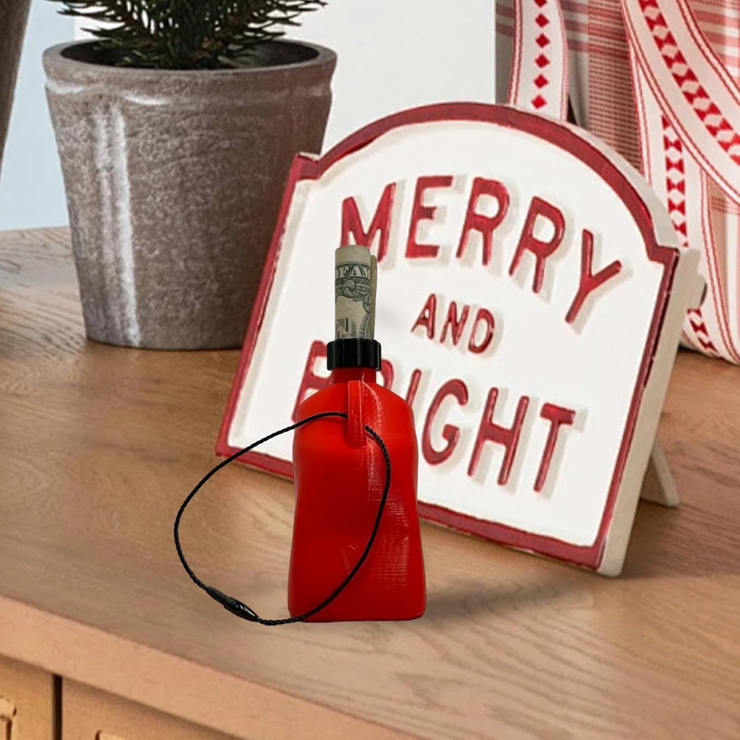 Design della lattina di olio che brucia: la nostra adorabile decorazione natalizia a tema olio che brucia funge anche da portafoglio, con un design realistico che aggiungerà un bel tocco festoso alla tua casa. Crea un'atmosfera festosa: la nostra borsa per albero di Natale farà proprio questo! Con il suo design unico e l'uso funzionale, aggiunge un tocco interessante alle tue decorazioni natalizie mantenendo i tuoi soldi al sicuro. Conservazione natalizia a doppio scopo: ravviva le tue decorazioni festive con il nostro portafoglio. Progettato per riporre tipologie di tagli diversi, unisce stile e praticità. Robusto materiale ABS: realizzato in robusto materiale ABS, questo portafoglio per albero di Natale è resistente all'usura, garantisce una qualità duratura per molteplici stagioni festive. Ideale per ogni occasione: design unico, questo portafoglio a forma di albero di Natale migliora le riunioni, rendendolo ideale per la festa della mamma, Natale, compleanni, matrimoni o San Valentino: una vera aggiunta alle tue attività festive.