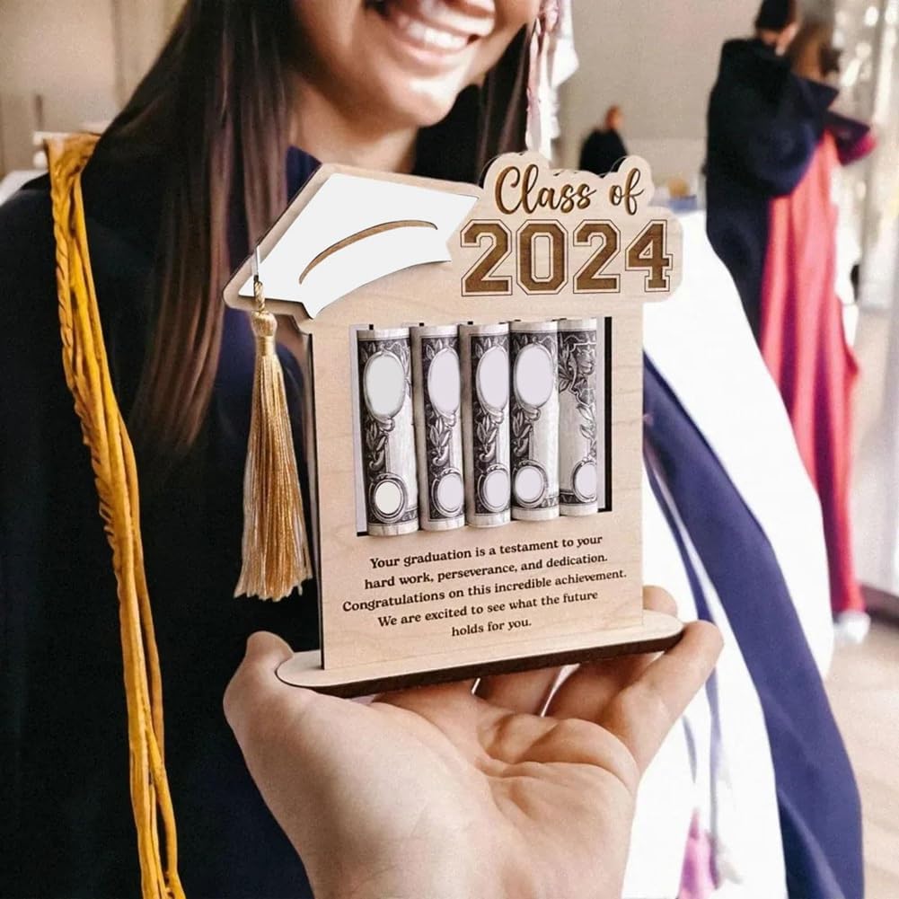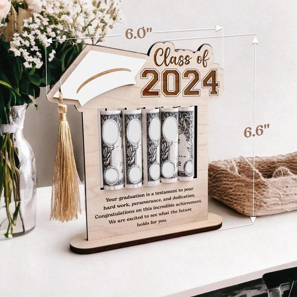 Regalo di laurea: questo supporto in legno è appositamente progettato per celebrare la stagione di laurea 2024. È un regalo premuroso e significativo per i laureati che riconosce i loro risultati e segna un risultato importante nella loro vita. DESIGN BUSTA: il porta laurea presenta un design a busta simile alle buste tradizionali utilizzate per presentazioni o buoni regalo. È simbolico e rappresenta un apprezzamento dei risultati dei laureati e degli sforzi futuri. REGALO PERFETTO: questo porta carte di laurea è un fantastico regalo per la laurea o per la laurea; Puoi scrivere i tuoi calorosi auguri al laureato sul retro per renderlo un regalo premuroso. ADATTO ALLA CLASSE DEL 2024: questo salvadanaio per la laurea è un ottimo regalo per la classe del 2024; Sicurezza dei materiali: il porta biglietti da visita è realizzato principalmente in legno e la trama aggiunge fascino e fascino al prodotto; Questa composizione lo rende leggero ma robusto, affidabile e sicuro; Il supporto è accuratamente progettato in modo che non si deformi, non si rompa e non emetta odori sgradevoli, garantendo un utilizzo a lungo termine. Rappresenta un ottimo modo per fare regali in denaro e creare un effetto sorpresa per una gioia. Questo portafoglio per laurea è progettato per essere sicuro. Progettato per conservare in sicurezza i contanti, offre un'alternativa creativa e divertente alle tradizionali scatole per biglietti di laurea o torte con soldi. Il tuo laureato sarà davvero entusiasta quando i suoi soldi usciranno dalla confezione.
