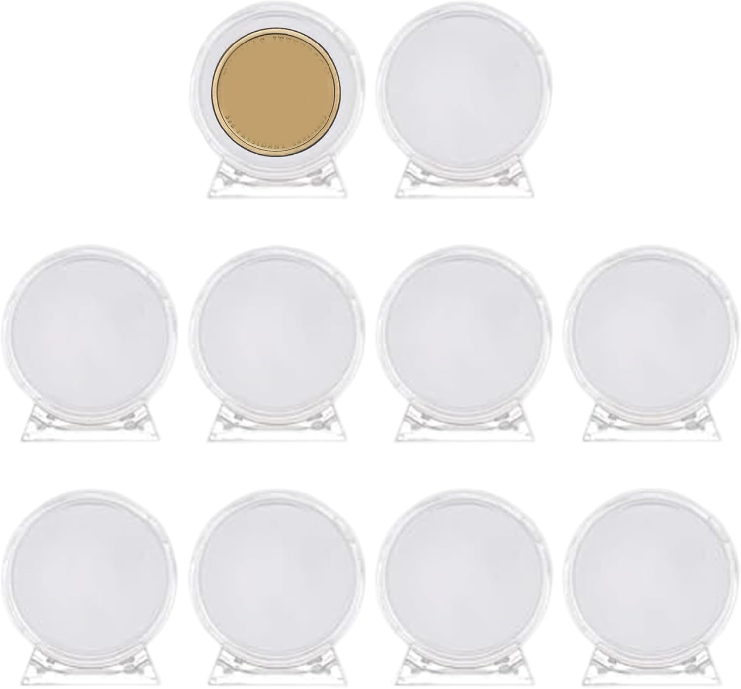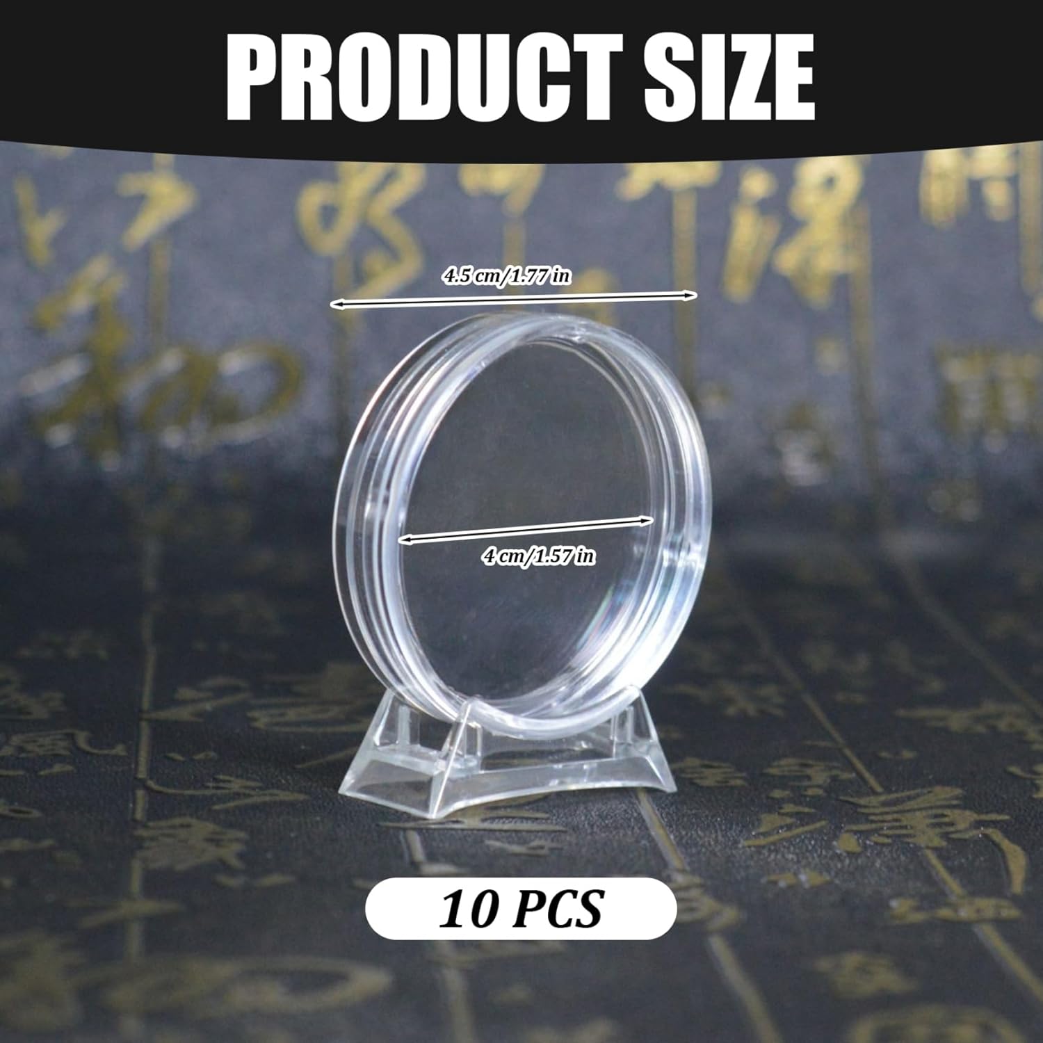 Design a vista chiara: il materiale plastico trasparente consente di visualizzare facilmente entrambi i lati di ciascuna moneta, offrendo una visualizzazione dettagliata e senza ostacoli proteggendole da sporco, polvere e danni. Finitura robusta e lucida: realizzati in plastica liscia di alta qualità, questi supporti sono lucidati per un aspetto elegante e una lunga durata..La base robusta garantisce che la moneta rimanga in posizione verticale e saldamente in posizione. Perfetto per i collezionisti di monete: questo set di 10 portamonete in plastica trasparente offre un modo sicuro e organizzato per esporre e conservare le tue preziose monete, ideale per collezionisti e appassionati. Facile da usare e riutilizzabile: questi portamonete non sono solo facili da usare ma anche riutilizzabili, garantendoti di poter conservare ed esporre in sicurezza le tue monete per gli anni a venire senza preoccuparti dell'usura. Dimensioni e compatibilità ideali: ogni supporto misura 1,6 pollici di diametro, rendendolo adatto a monete e valute di dimensioni standard..Le sue dimensioni compatte consentono un facile impilamento e stoccaggio, risparmiando spazio sullo scaffale.
