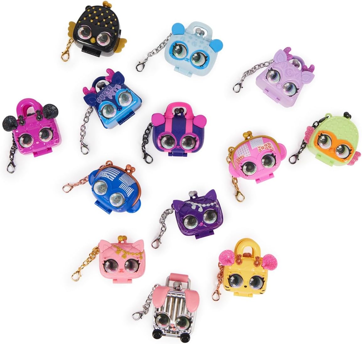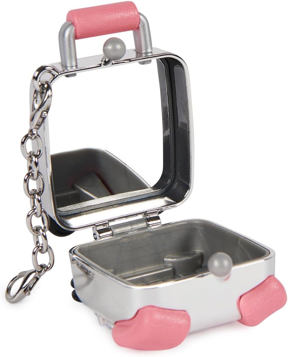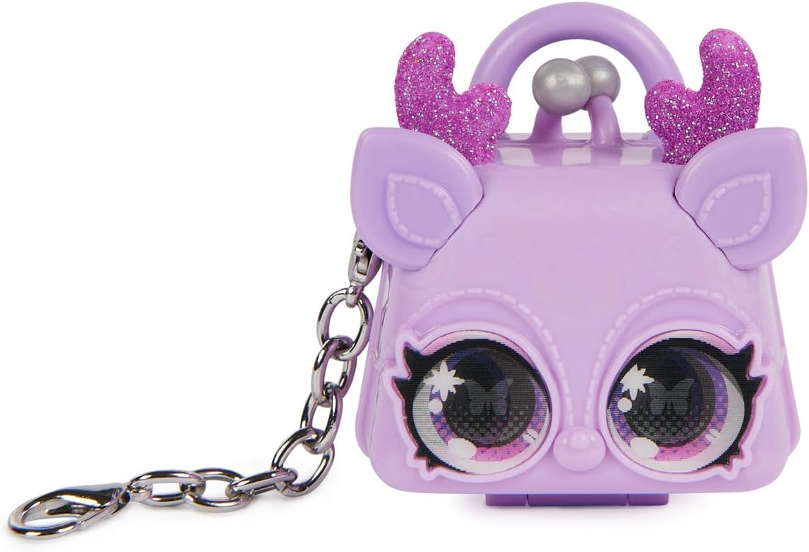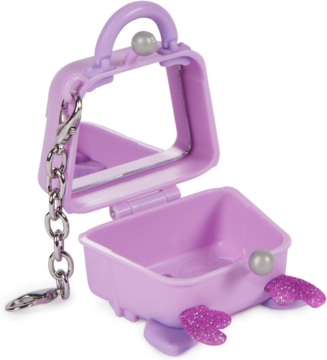 Un accessorio trendy a forma di medaglione da portare ovunque. Magia: quando lo inclini i suoi occhi lenticolari si muovono. Aprilo per rivelare uno specchio e riporre i tuoi accessori più preziosi. Si attacca ovunque per essere trendy in ogni situazione: sulla cintura e anche sulla tua borsetta Purse Pets (venduta separatamente). Diversi modelli da collezionare e diversi materiali. Consegnato in vassoi da 11 pezzi. Dai 4 anni.