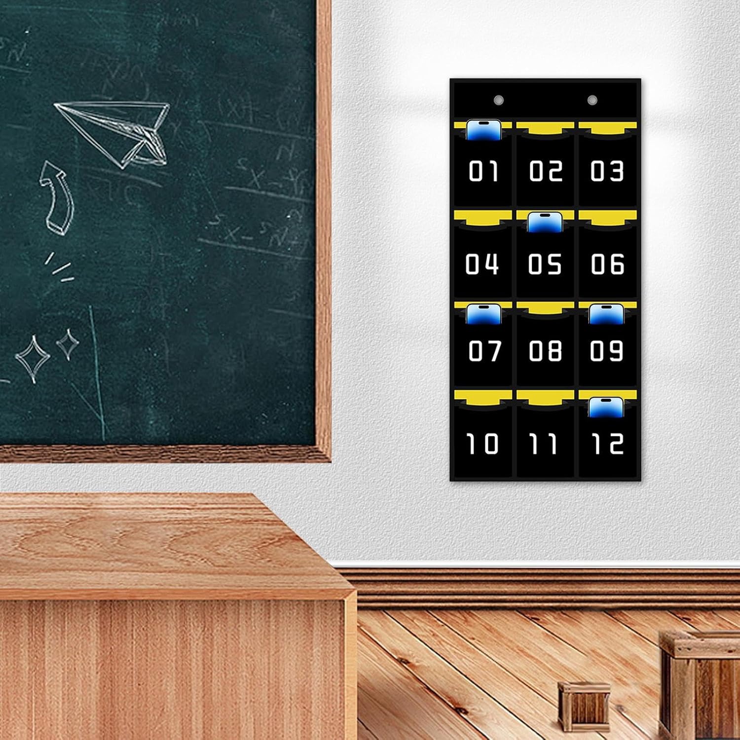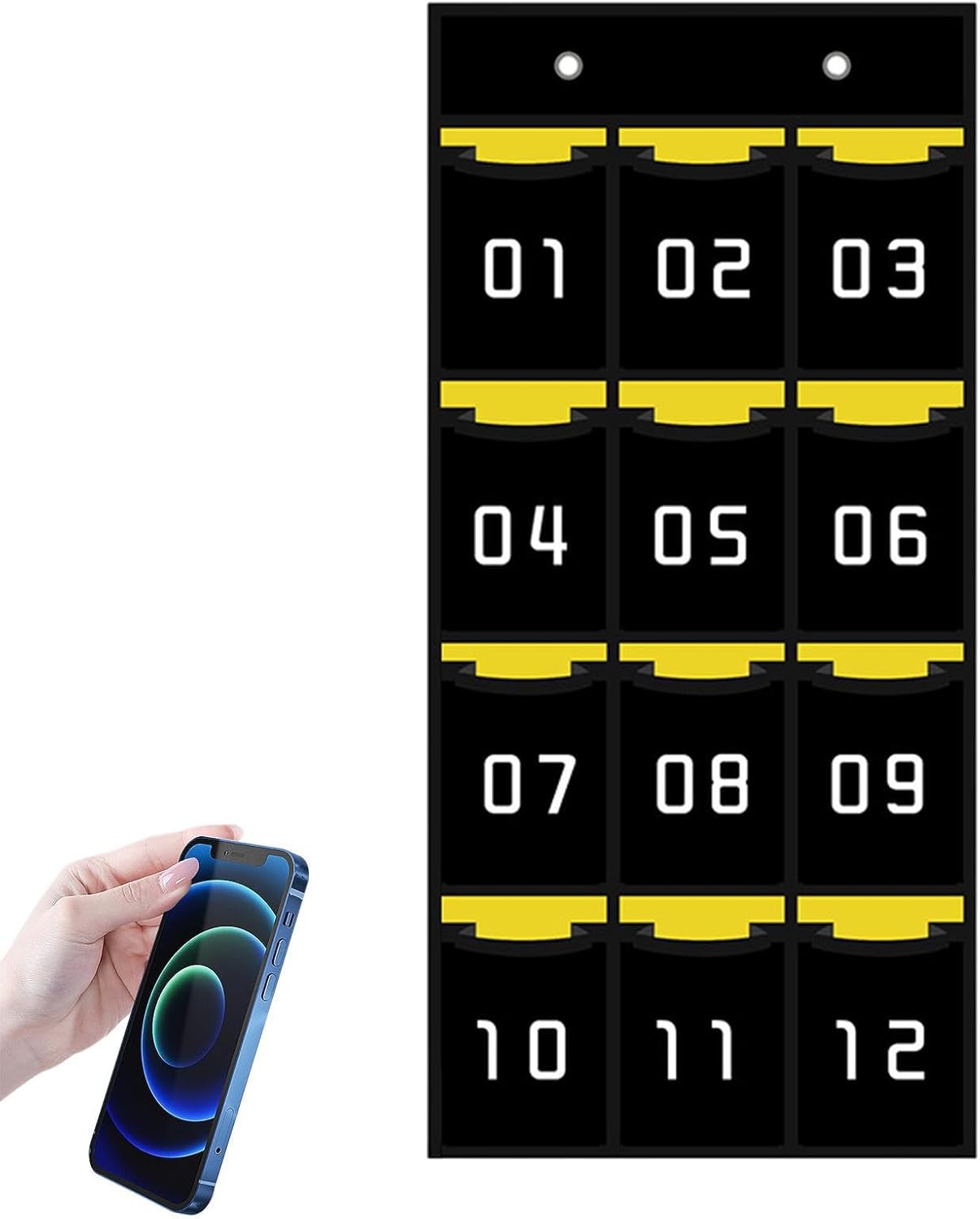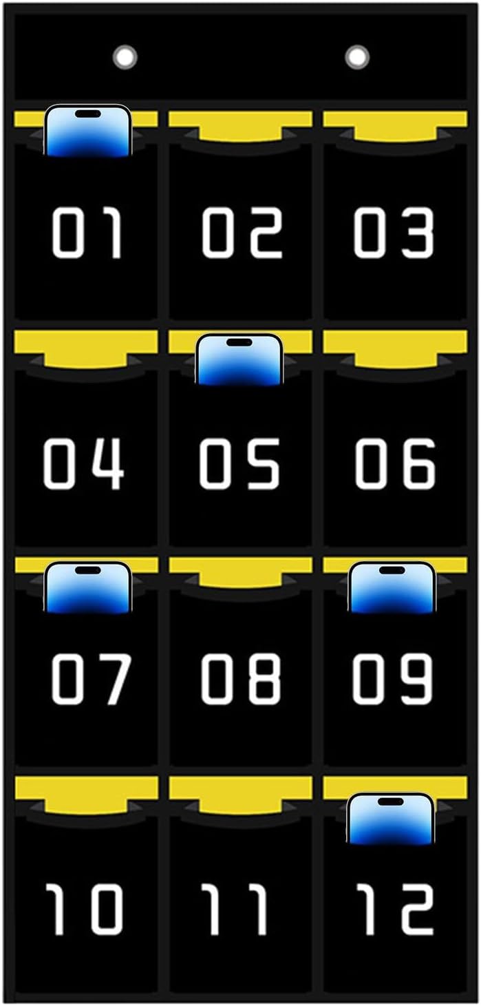 Non facile da rompere: il nostro supporto per telefono in classe è realizzato in tessuto di alta qualità con tessuto non tessuto ispessito ed è eccezionalmente durevole e resistente alla rottura. La superficie facile da pulire garantisce un ambiente educativo igienico e organizzato. Organizzazione semplice: questo porta telefono per l'aula è dotato di tasche numerate in modo da poter trovare i tuoi oggetti comodamente e rapidamente. Ti fa anche risparmiare tempo mantenendo i tuoi telefoni organizzati e nascosti. Organizzazione multifunzionale: questo supporto per telefono in classe può contenere non solo smartphone, ma anche carte, chiavi, gomme Radoboard, calcolatrici e penne. È una soluzione perfetta per mantenere la scrivania ordinata e irregolare. Per mantenersi liberi. Efficienza migliorata: massimizza la produttività con questo supporto per telefono in classe. Non hai bisogno di strumenti aggiuntivi. Basta fissarlo alla scrivania con 4 ganci metallici per una comodità perfetta. Tieni il telefono vicino e ottieni di più durante il giorno! Molteplici applicazioni: mantieni il tuo telefono al sicuro nelle sale conferenze, negli uffici scolastici, nelle aule di formazione e altro ancora con il nostro versatile supporto per telefono. Posiziona diversi modelli di telefono per comunicazioni efficienti e accessibilità in qualsiasi classe o ambiente di ufficio.