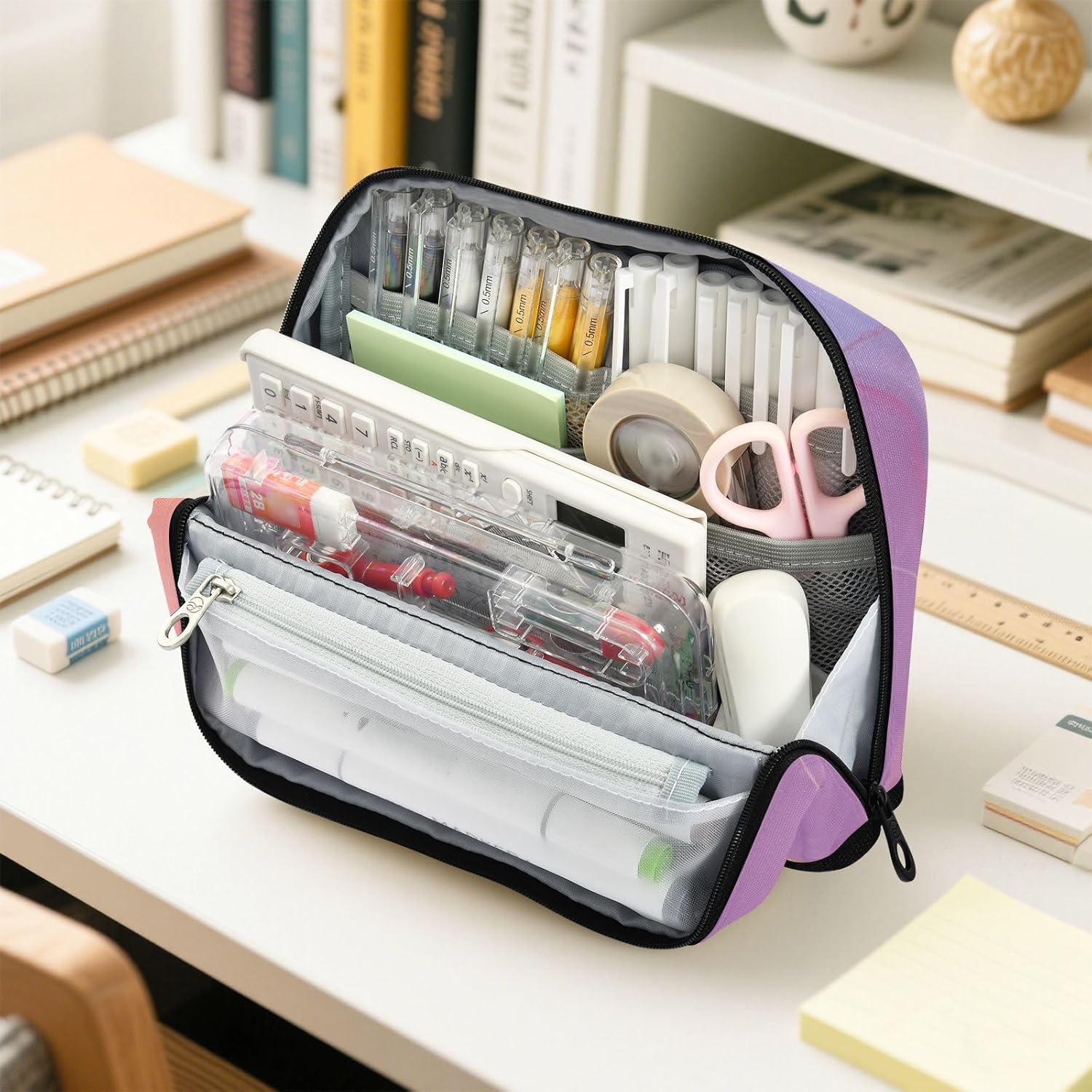 Design unico: quando si apre e si piega all'indietro, la chiusura magnetica lo manterrà piegato, formando una base resistente. Si trasforma in un portapenne che può essere posizionato sul tavolo, consentendo di vedere facilmente la posizione esatta degli oggetti all'interno, aiutandoti a trovare rapidamente ciò che desideri. Recupero degli oggetti senza sforzo: gli scomparti dedicati delle borse per matite (principale, rete con chiusura, tasca aperta) non significano più furetti. Trova immediatamente il tuo evidenziatore, unità USB o balsamo per le labbra, ovunque tu sia. Tessuto in nylon rinforzato: borsa per matita realizzata in nylon resistente 100% poliestere. Resiste a graffi, graffi e usura quotidiana, assicurando che la borsa rimanga fresca più a lungo. Facile da pulire. Multifunzione: non si tratta di una custodia per matite, ma può essere utilizzata anche per altri scopi. Come una penna, una matita o un astuccio per pennelli per polvere, una borsa per il trucco, un ufficio personale e una custodia per forniture scolastiche. Questo piccolo astuccio per matite è un buon regalo per adulti, scrittori e artisti per laurea, regalo di compleanno o forniture per il ritorno a scuola o in viaggio.