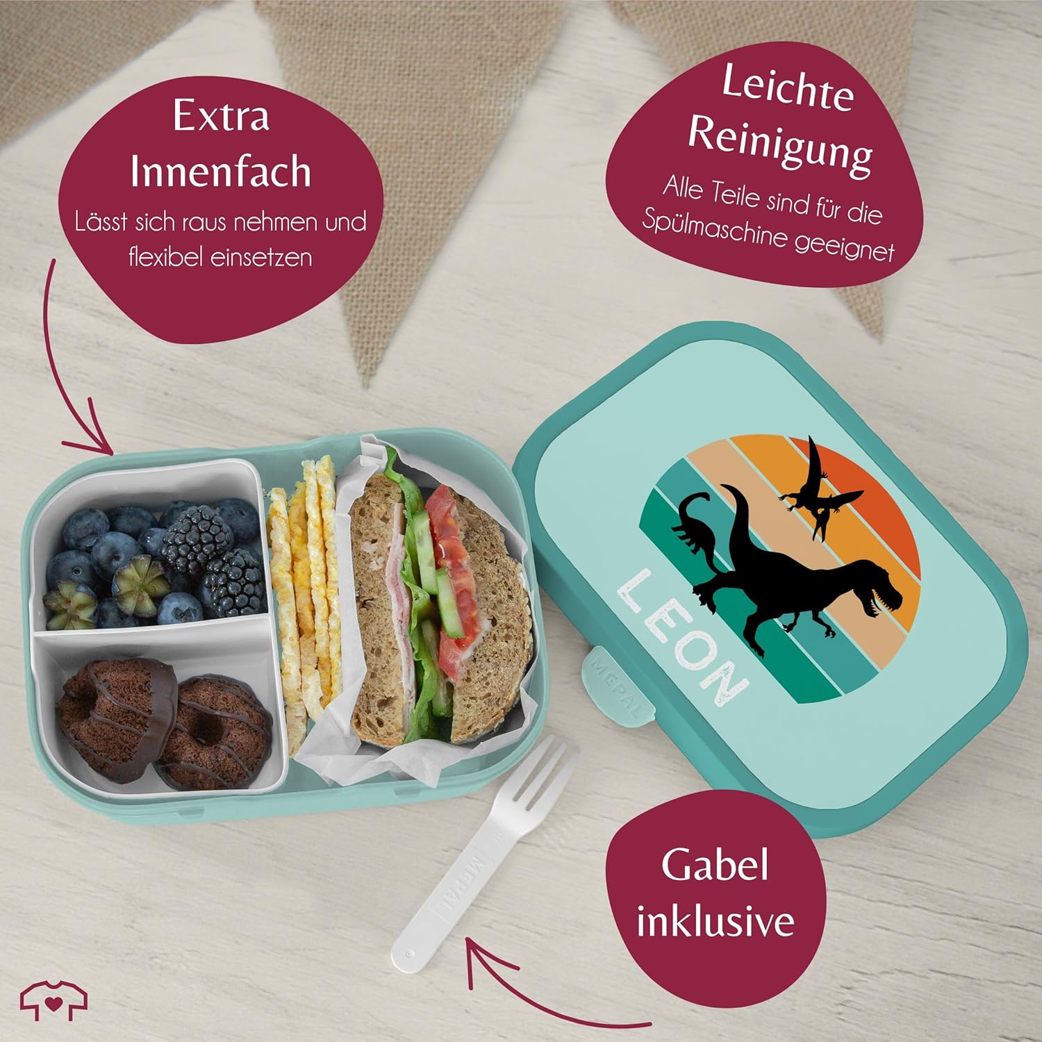 | Enthaltene Komponenten | Bento-Einsatz, Brotdose, Snack-Gabel |