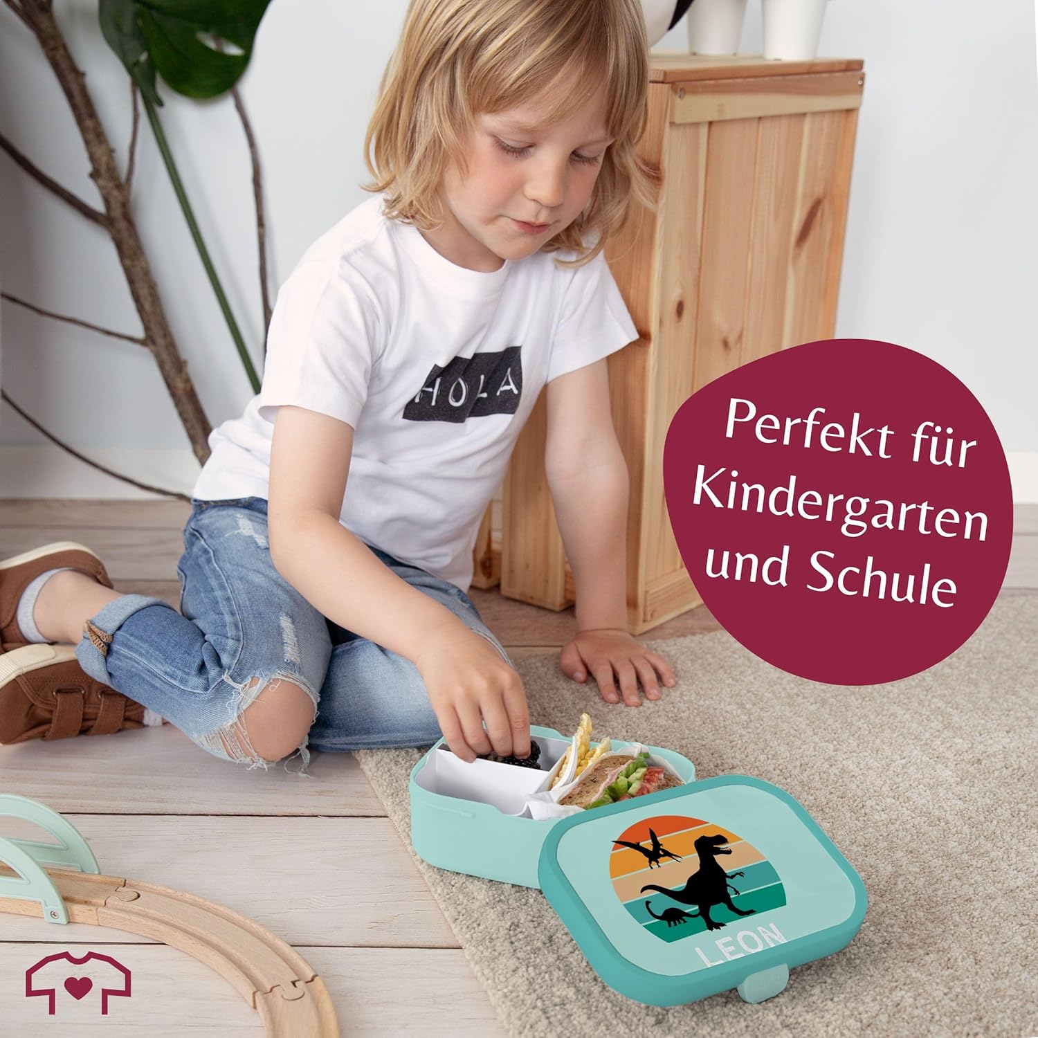 ✔️ REGALO DINO: questo fantastico motivo con dinosauro è perfetto per tutti i bambini in età scolare e gli appassionati di dinosauri. Inserto Bento: questo bellissimo contenitore per il pranzo per bambini consente di separare il cibo grazie all'inserto Bento rimovibile e può quindi essere utilizzato in vari modi. Che si tratti del classico pranzo o della frutta fresca e secca per la scuola, grazie agli scomparti tutto rimane fresco e appetitoso. Forchetta snack: il contenitore per il pranzo ti invita a gustare un'ampia varietà di cibi con la piccola forchetta snack. Il contenitore per snack non è adatto al microonde. Per riscaldare il cibo è quindi necessario toglierlo dal contenitore del pranzo. Lavabile in lavastoviglie: la pulizia del contenitore per il pranzo dei bambini può essere effettuata facilmente in lavastoviglie dopo l'uso. Sia il contenitore per il pranzo, l'inserto bento che la forchetta sono lavabili in lavastoviglie e quindi facili e igienici da pulire. Il materiale del contenitore per il pranzo è privo di BPA e adatto agli alimenti, quindi non dovrai preoccuparti delle sostanze chimiche nocive. Leggero: con un peso di soli 250 grammi, il contenitore per il pranzo stampato può essere facilmente portato ovunque. Con una dimensione di 132 mm di larghezza, 178 mm di lunghezza e 61 mm di altezza, il contenitore per il pranzo è compatto e perfetto per la borsa della scuola o lo zaino. Con una stampa divertente, il contenitore per il pranzo è perfetto per l'inizio della scuola e per ogni altra pausa pranzo