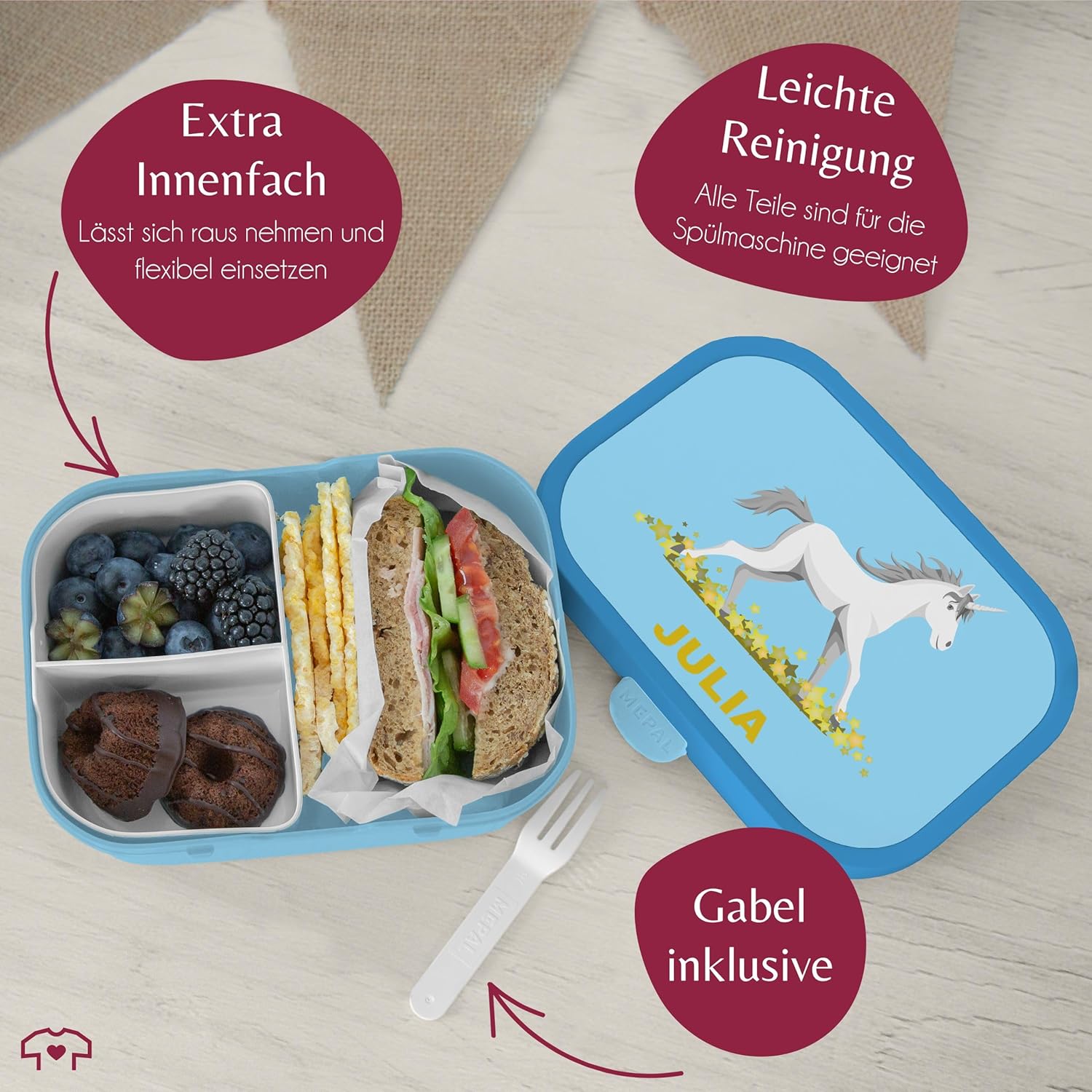 Enthaltene Komponenten ‎Bento-Einsatz, Brotdose, Snack-Gabel