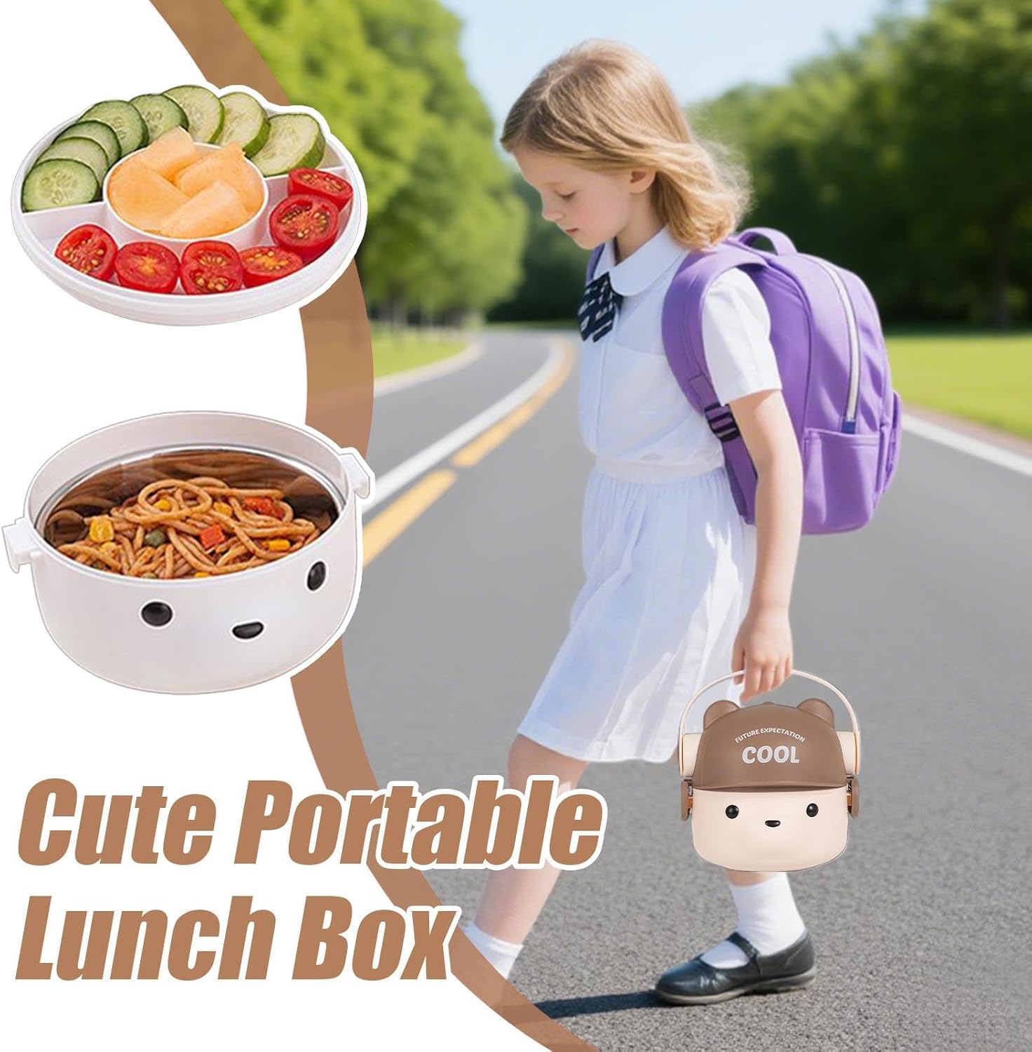 Sicurezza Antiversamento: Grazie alla chiusura ermetica e alla tecnologia antiurto, la tenuta stagna e il meccanismo a scatto bloccano freschezza e prevengono perdite, ideale per gite o asilo Materiali Senza Odori: Doppio strato isolante e interno in acciaio inossidabile contrastano efficacemente gli sbalzi termici, con superfici facili da pulire per una manutenzione semplificata Design Funzionale:Soluzione ottimizzata con scaldamento rapido per lunch box bambini, concepito per l'uso diretto nel microonde, essenziale per stili di vita dinamici Pranzo Semplice: Il design anti-mescolanza suddivide il cibo in porzioni versatili, creando un che mantiene il pranzo dei bambini ben organizzato e fresco tutto il giorno, per un pasto pratico. o Stiloso: La borsa porta pranzo con orsetto una borsa allegra e un contenitore estetico, unendo divertimento e stile personalizzato per bambini che amano per pasti alla moda
