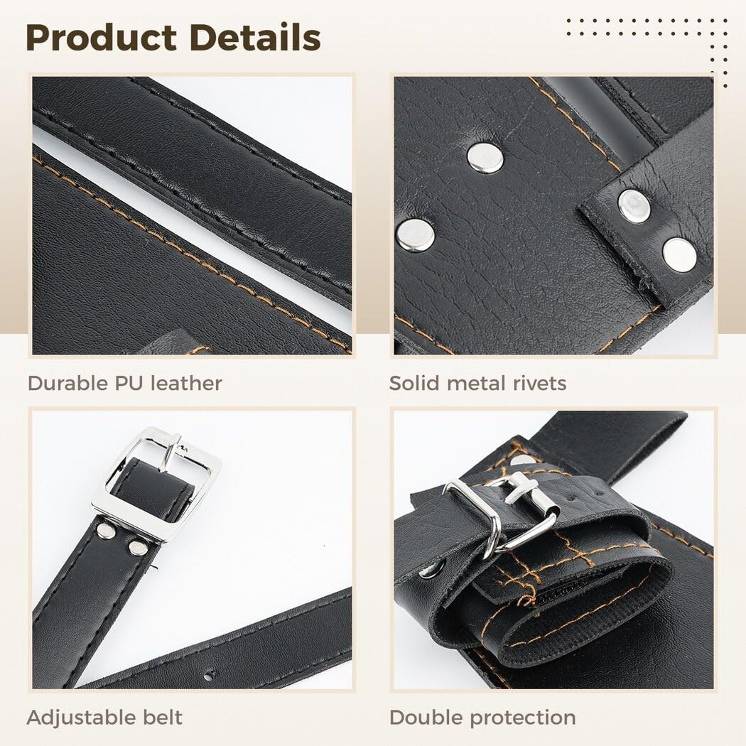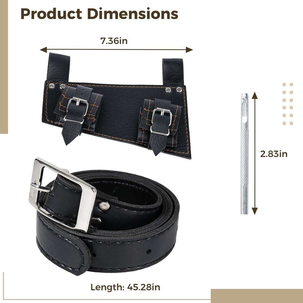 Pelle PU di alta qualità: realizzata in pelle PU impermeabile con cuciture robuste e rivetti in metallo, offre elevata stabilità e durata. Misura regolabile: sia la fondina che la cintura sono regolabili per adattarsi a diverse forme del corpo e spade. È incluso anche un perforatore. Esecuzione squisita: si abbina perfettamente ai costumi medievali e aggiunge dettagli extra per giochi di ruolo, spettacoli teatrali e balli in maschera. Sicuro da usare: la cintura superiore regolabile e la chiusura in velcro inferiore forniscono una doppia protezione e impediscono alla spada di scivolare. Il materiale interno morbido evita i graffi. Ampia applicazione: adatto a una varietà di lame come katane, pugnali e stocchi, ideali per vari ruoli, dai guerrieri ai re.
