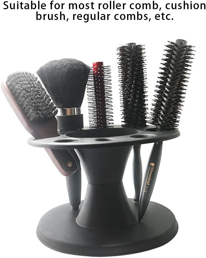 8 fori di diverse dimensioni, adatti per la maggior parte dei pettini a rullo, spazzole per cuscini, pettini normali, ecc. Ideale per parrucchieri professionali, camere da letto o bagni di casa. Supporto a clessidra e design più stabile, simmetrico e dimensioni compatibili, è molto pratico. Facile da installare, mantieni i tuoi strumenti per capelli organizzati e rendi la tua scrivania pulita e ordinata. Uso multiuso, può essere utilizzato per il ripiano portaoggetti o per il ripiano espositivo.