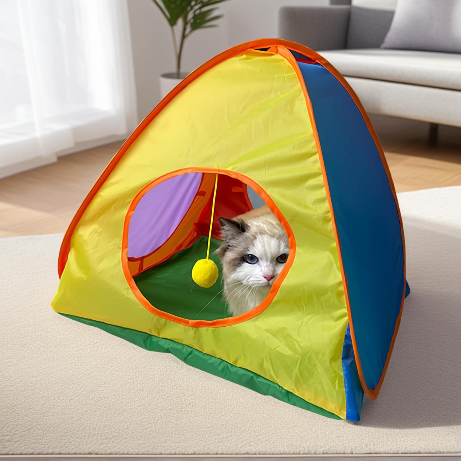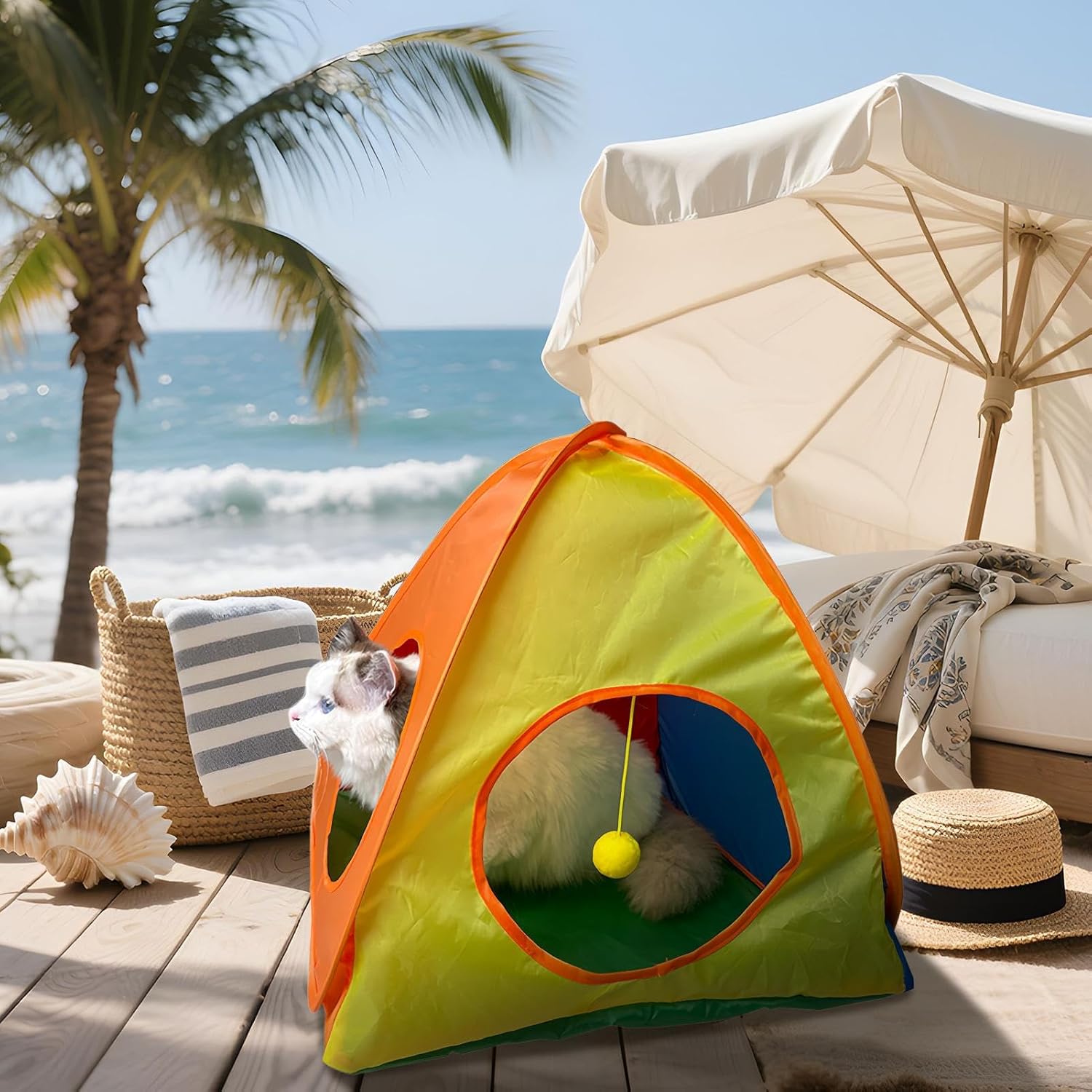Focus UV & Ventilazione: Superstrato resistente ai raggi UV e zanzariera per tetto che favorisce la circolazione dell'aria. Spazio esterno estivo sicuro per animali con costante controllo termico e maggiore comfort grazie al design ventilato. Esplorazione stimolata: accogliente curva e tema artistico arco-en- in tonalità tranquille risvegliano la curiosità durante i giochi, migliorando sottilmente l'atmosfera del tuo habitat come accessorio decorativo ingegnoso. Gioco e Riposo: progettata con accattivanti nascondigli e un eccitante ingresso semi-chiuso, questa tenda pieghevole offre uno spazio ampio per allungarsi. Le palline giocattolo integrate creano un'area versatile per l'attività e il riposo degli animali. Rifugio Antigraffio: realizzato in tessuto resistente all'usura con struttura consolidata, che offre un'eccellente resistenza ai graffi, comfort ottimale e prestazioni affidabili nel tempo. Conservazione intelligente: ripiegata, questa tenda portatile per animali è molto compatta, offre un rapido montaggio e stoccaggio senza passaggi complessi, offrendo una soluzione facile da trasportare che preserva spazio prezioso.