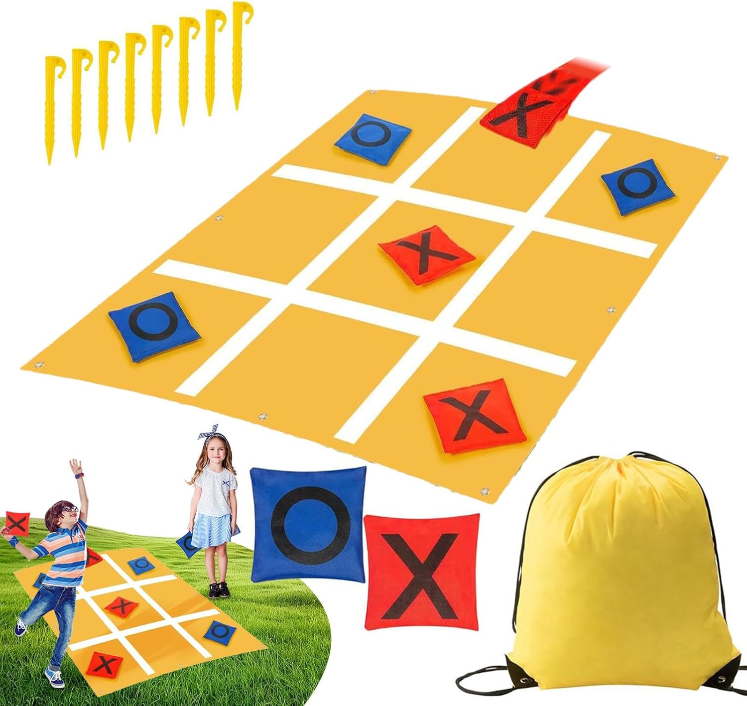 Portate gioia: godetevi ore di intrattenimento all'aperto e all'interno. Con 1 panno, 10 pouf, un sacchetto con coulisse e 8 chiodi gialli, il set da gioco perfetto promette una tensione infinita e un divertimento stimolante per tutta la famiglia. Gioca comodamente ovunque: il nostro gioco di tiro tascabile ti permette di divertirti con un momento emozionante con un montaggio facile e veloce; non è necessario alcun assemblaggio e ci vogliono meno di 10 secondi per iniziare a giocare o avvolgerlo, in modo che possa essere facilmente trasportato e utilizzato in viaggio. Sicuro e stabile: goditi momenti inestimabili di ricongiungimento familiare con il nostro telo da gioco da 3 x 3 piedi fissato con chiodi da 5,7 pollici, che mantengono i pouf da 4 x 4 pollici in posizione e garantiscono infinite ore di divertimento ridente. Lunga durata: realizzati in sacchi oxford resistenti all'usura e lavabili e poliestere antistrappo, questo gioco promette divertimento duraturo per tutte le età. Preferito per la serata di gioco: porta le tue serate di gioco al livello successivo con questo emozionante gioco di lancio tascabile! È ampiamente utilizzato per il tempo libero e l"intrattenimento, ma è anche un"ottima opportunità di apprendimento per e ragazze e un gioco amichevole per tutti possono divertirsi.