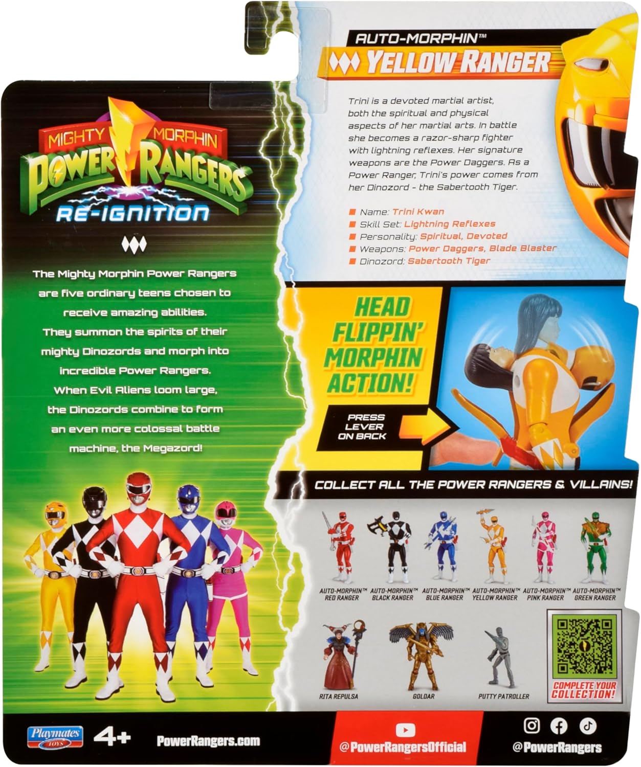 NUOVE POWER RANGERS: I tuoi eroi preferiti tornano in versioni inedite ispirate alla nuova serie rimasterizzata Mighty Morphin! PERSONAGGIA: Il coraggioso e determinato Trini Kwan, alias il Ranger Giallo. Funzione auto morphin: 2 statuette in 1! Stringe le gambe per attivare il cambio di testa e guardala trasformarsi all'istante, passando dal viso del Ranger al suo casco iconico. ACCESSORI INCLUSI: La tua figura viene fornita con le sue 2 armi da combattimento. Dimensioni: la tua figura misura 15 cm.
