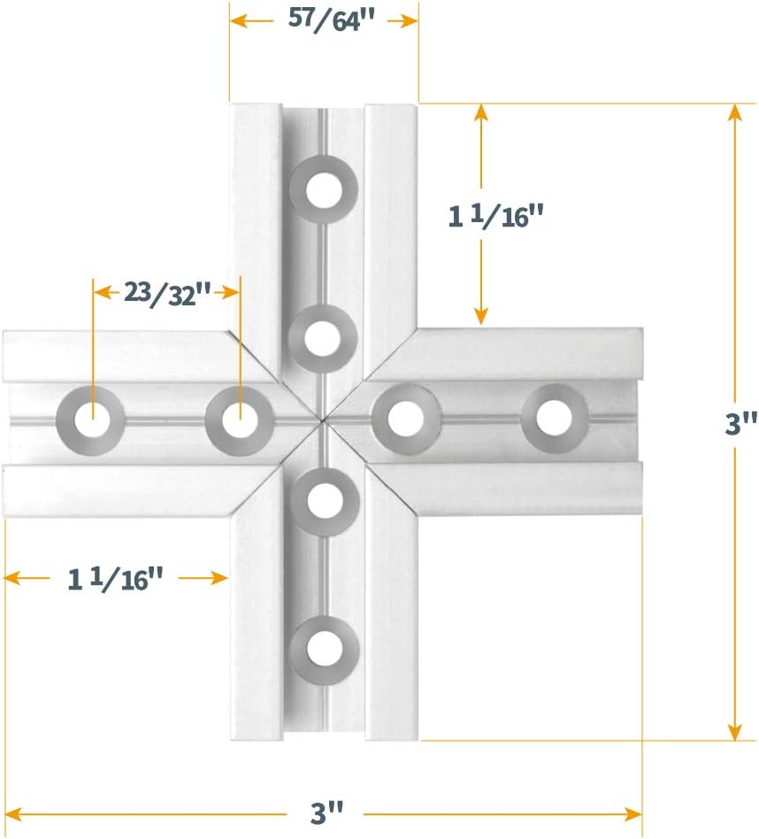Include: Heavy Duty T-Track Intersection 4 pezzi kit con fori pre-forati e accessori di montaggio. FUNZIONE: Soluzione perfetta per costruire e ottimizzare il vostro banco di lavoro, presse, maschere e infissi – fissando il materiale di lavoro in una varietà di configurazioni di tavoli da lavoro Premium: realizzati in alluminio anodizzato leggero, questi binari a T sono privi di sbavature, offrendo un profilo lucido con proprietà anti-corrosione e resistenti all'usura, oltre a una durata superiore rispetto ad altre intersezioni trasversali per la lavorazione del legno. CARATTERISTICHE: Due fori praticati e svasati per mantenere il livello quando accoppiato con altri pezzi di binario – Per l'uso con Powertec Heavy Duty 71378 e 71379 T-track Specifiche precise: ogni estrusione in alluminio misura 3,8 cm di lunghezza, è perfettamente smussata a 0,95 cm e assemblata sfoggia un profilo incredibilmente allineato 7,6 x 7,6 cm.